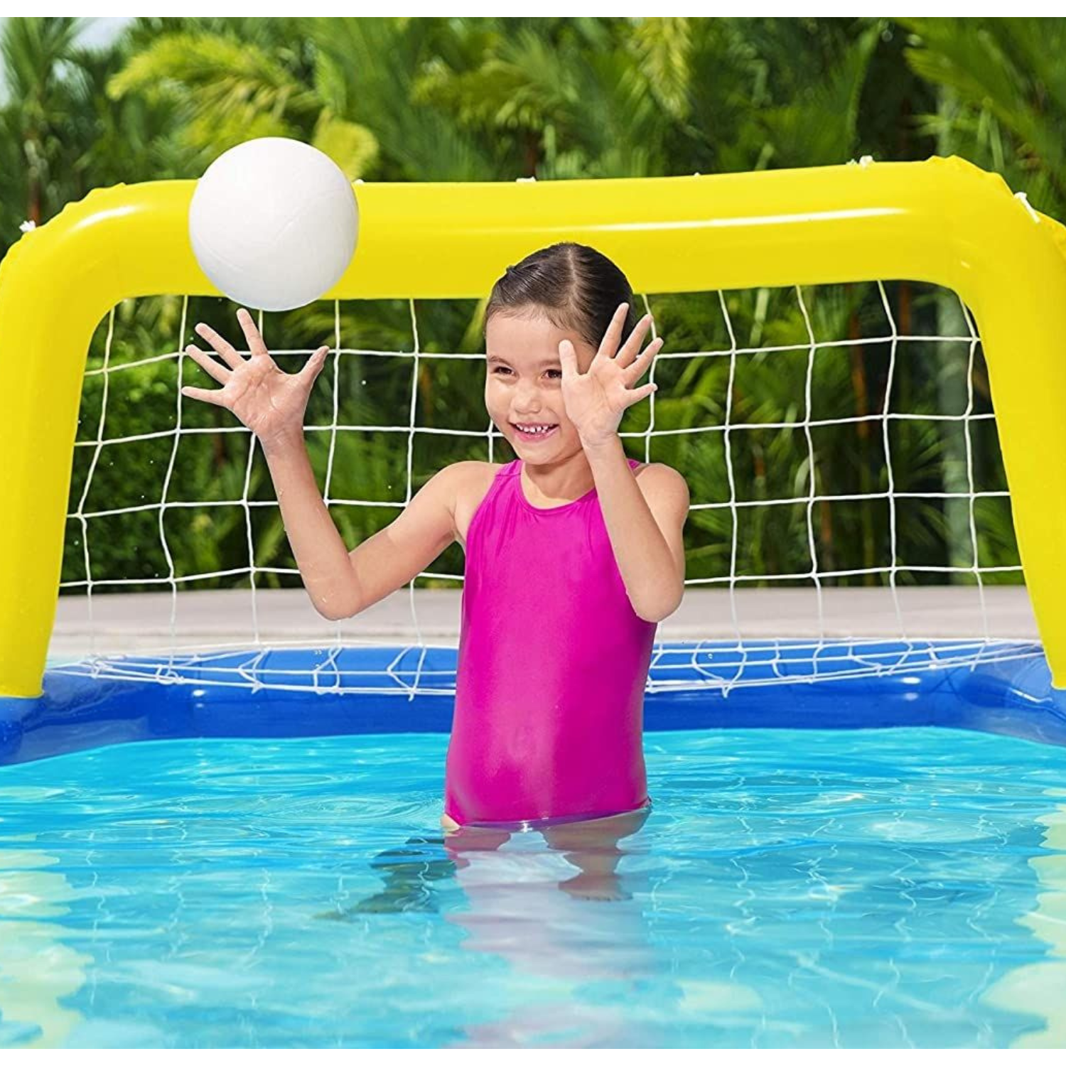 Kids can learn to play like the pros with the Bestway Water Pool Swimming Pool Game Set! They’ll have a blast as they try to toss the inflatable ball into the nylon netting, whether it’s simply to play and splash around, to hone in on skills with target practice or for a friendly competition against an opponent. Designed for use in the water, this game can also double as a soccer net on land. The Water Polo Swimming Pool Game is easy to set up and provides hours of entertainment!