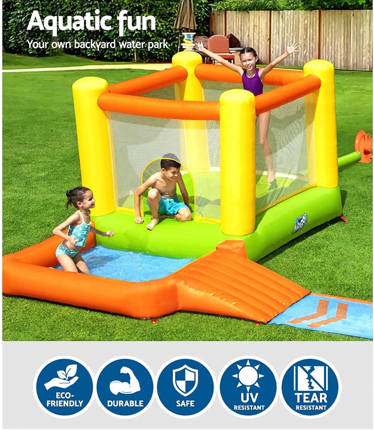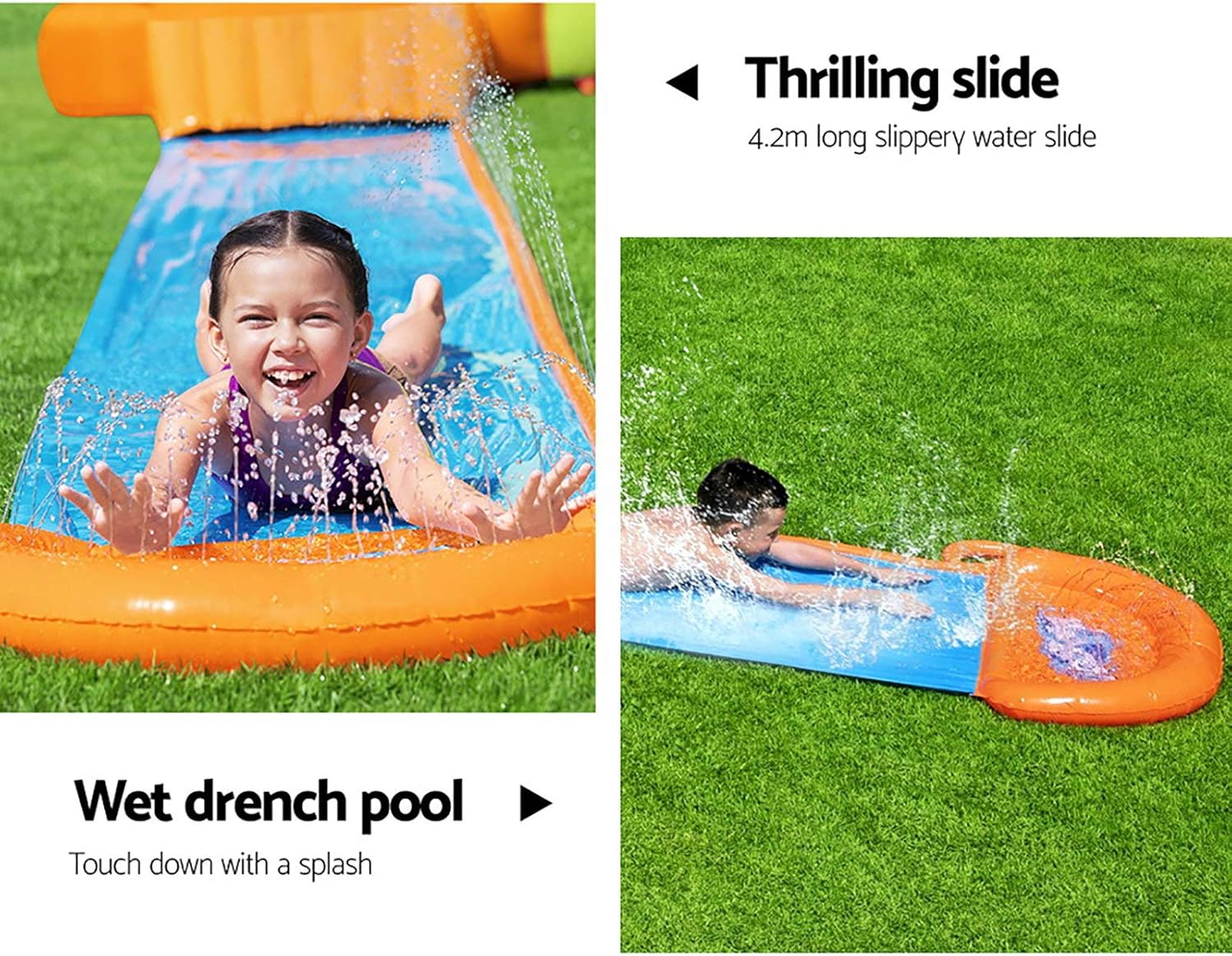 Enjoy the ultimate Splash & Dash water park. There is a lot to discover with a very large play pool, tunnel and bouncer. You can cool off from the pool before your next trip down. It also has a built-in water blaster to soak friends - just point and spray