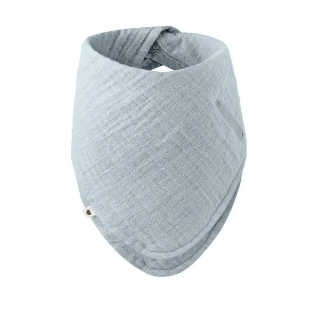 The BIBS Bandana bib is made of 100% organic muslin cotton. The dribble bib consists of multiple layers to ensure maximum absorbency and can be used to catch drool and regurgitation after feeding.
