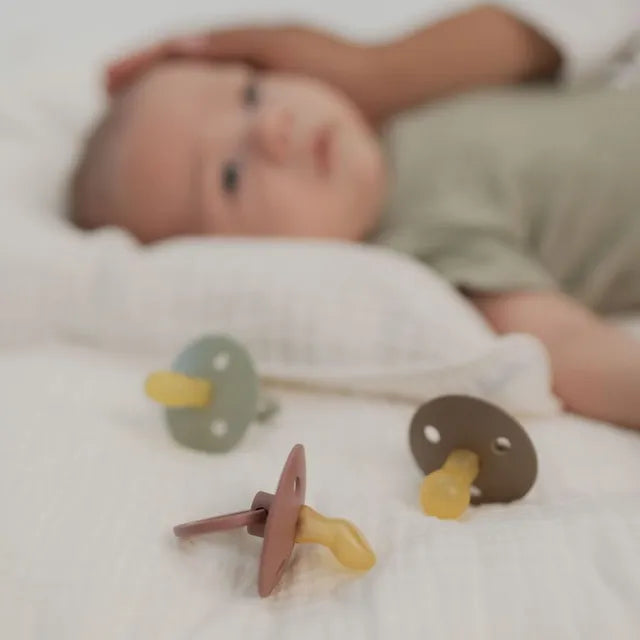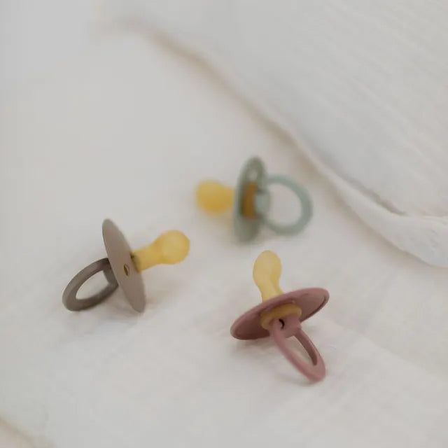 The Colour pacifier has been a bestseller for more than 40 years and is still the most iconic baby accessory and highly loved pacifier. The natural soft latex cherry shaped nipple and matte lightweight shield is designed to be the similar shape to a mother's breast. Recommended by midwifes to support natural breastfeeding as both the specific length and shape of Colour gives the baby the right sucking technique at the breast.