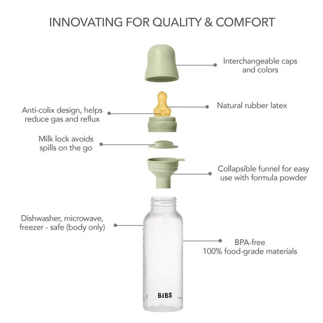 The BIBS Baby Bottle Round Latex 1 Pack 270 ml Medium Flow Blush features a single 270 ml baby bottle with a round shape and a medium flow latex nipple, ideal for babies aged 3-6 months. The medium flow nipple ensures a steady and controlled milk flow, perfect for babies who are transitioning to a faster feeding pace as they grow.