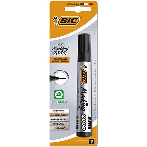 The BIC Marking 2000 ECOlutions permanent marker has a rugged bullet nib for creating clean and thick 1.7 mm lines. An indelible pen that works on almost all surfaces from paper, cardboard and plastic to glass, metal and CDs. Made in Europe with 51% recycled materials (not including the ink system).