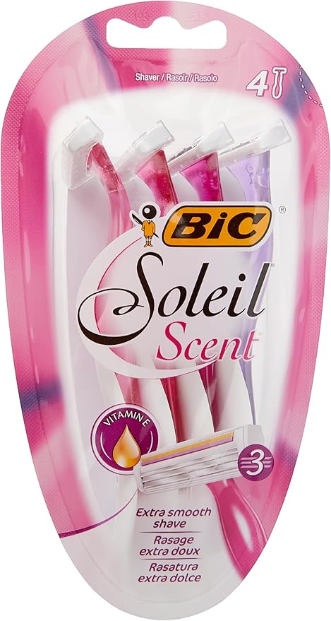 Triple blade shaver with scented ergonomic handle. Triple blade shaver with polymeric and chrome covering for a flawless smooth shave.
