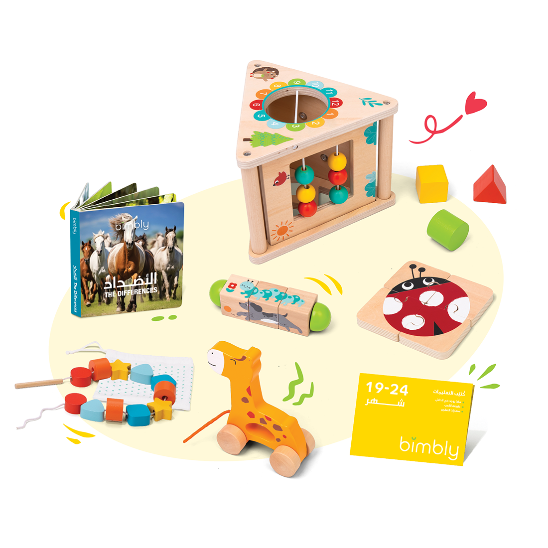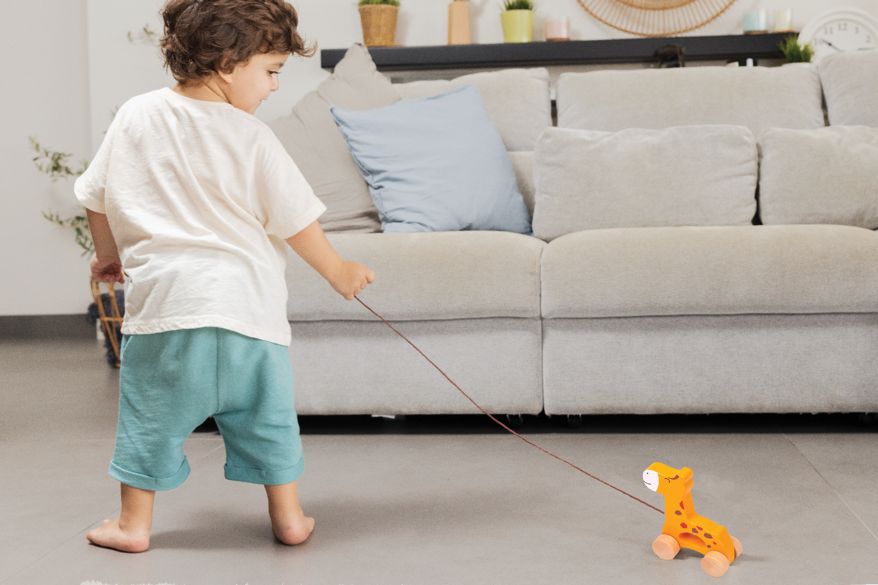 • Pull-Along Giraffe Toy: Encourages your child to walk and be physically active, enhancing hand-eye coordination.