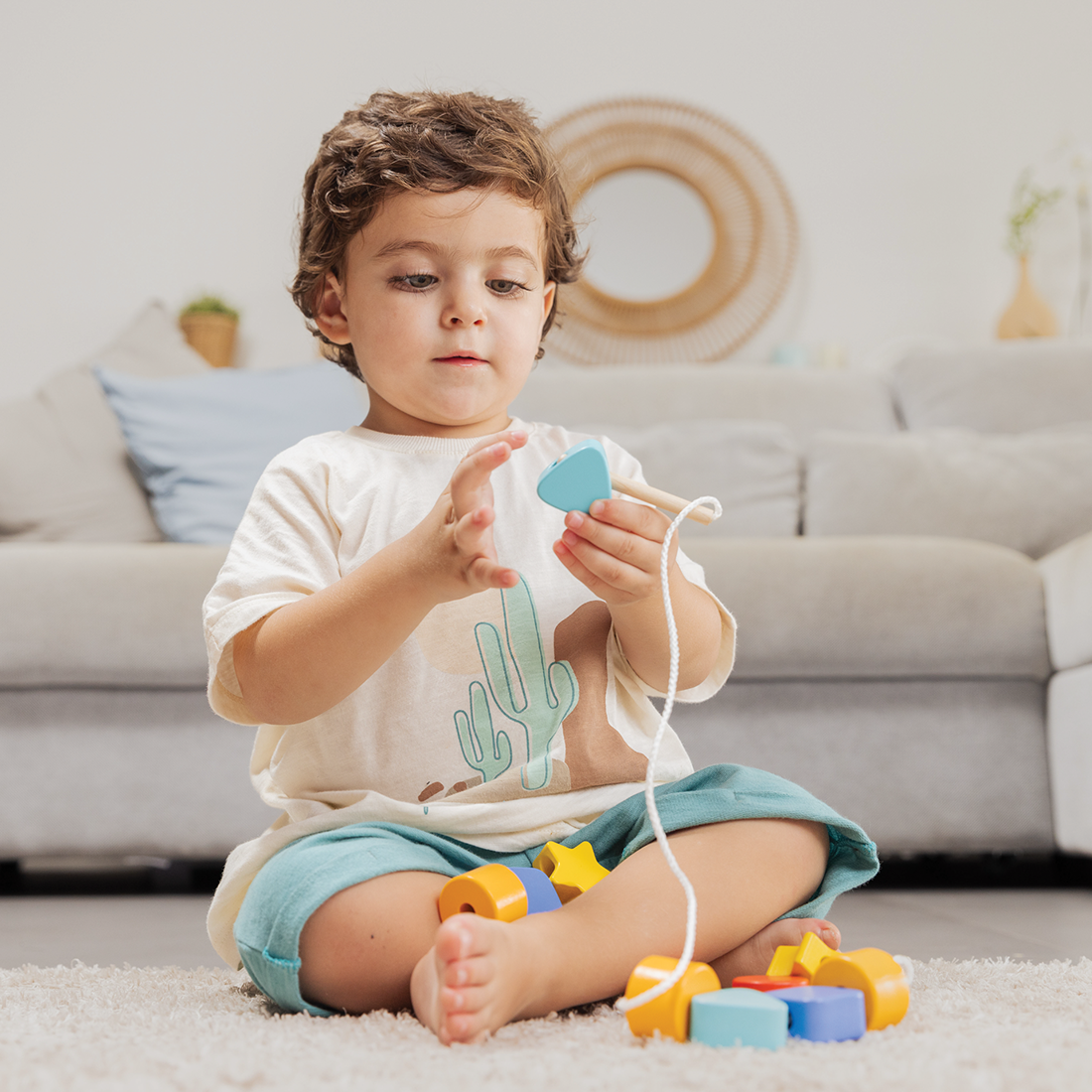 • Bead Lacing Toy: Includes a storage bag, 11 bead shapes, and a lacing string. This toy helps children develop fine motor skills, hand-eye coordination, creativity, and artistic skills. The large beads allow easy lacing, aiding in shape and colour recognition.