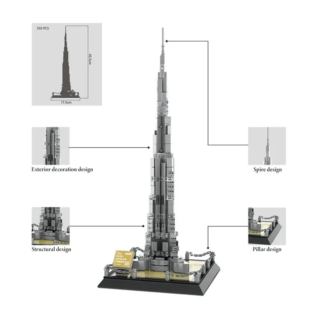 - Building block kit to build a reproduction of the Burj Khalifa in Dubai. Excellent detail due to the large number of pieces. Recommended for children and adults with experience in building blocks.