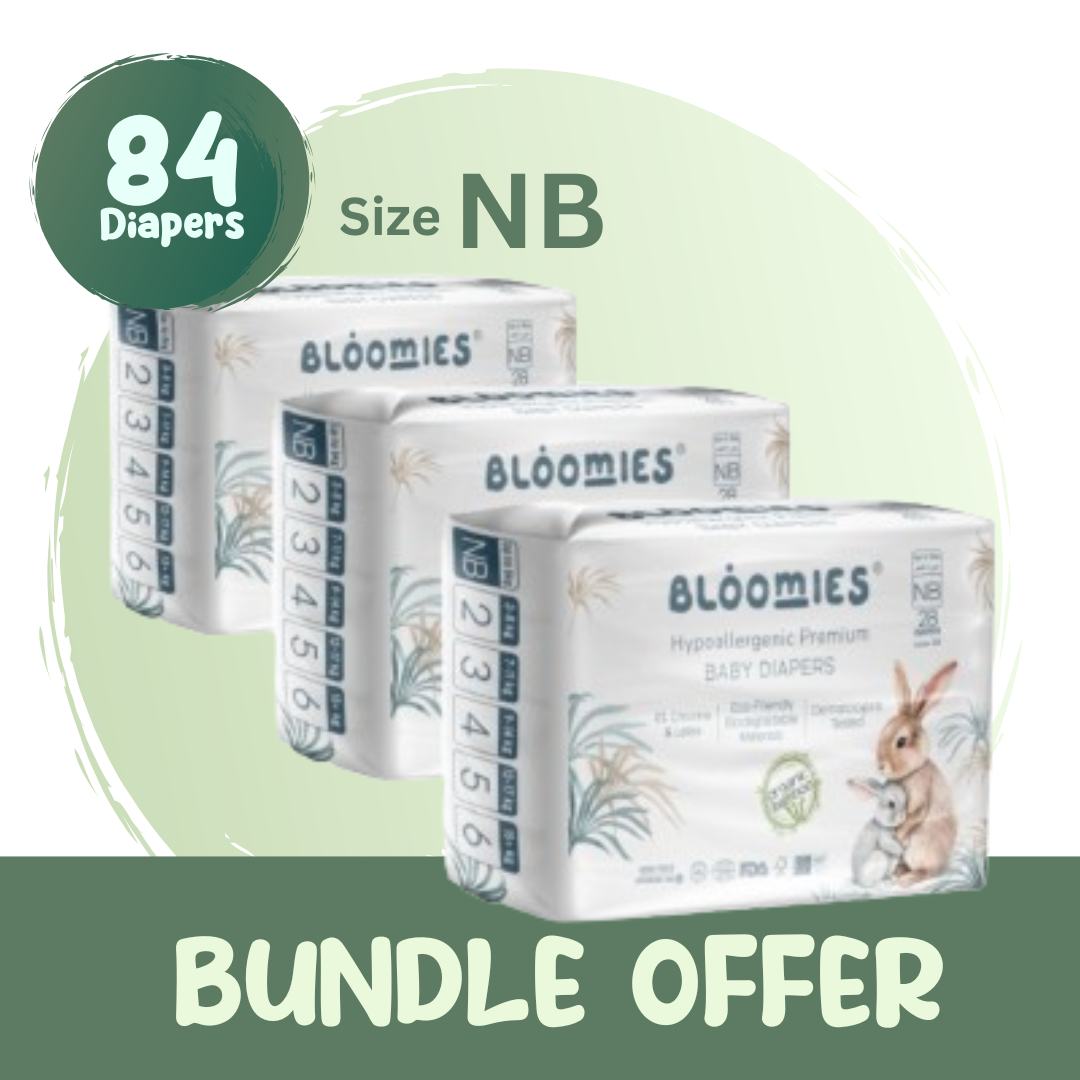 Bloomies Premium Baby Diapers: Nurturing care for your newborn, made gentle and safe with hypoallergenic, Dermatologist tested materials. Crafted from 100% biodegradable bamboo, these disposable diapers are soft, breathable, Latex & Chlorine-free with a convenient wetness indicator. Nurture naturally with Bloomies, where babies bloom.
