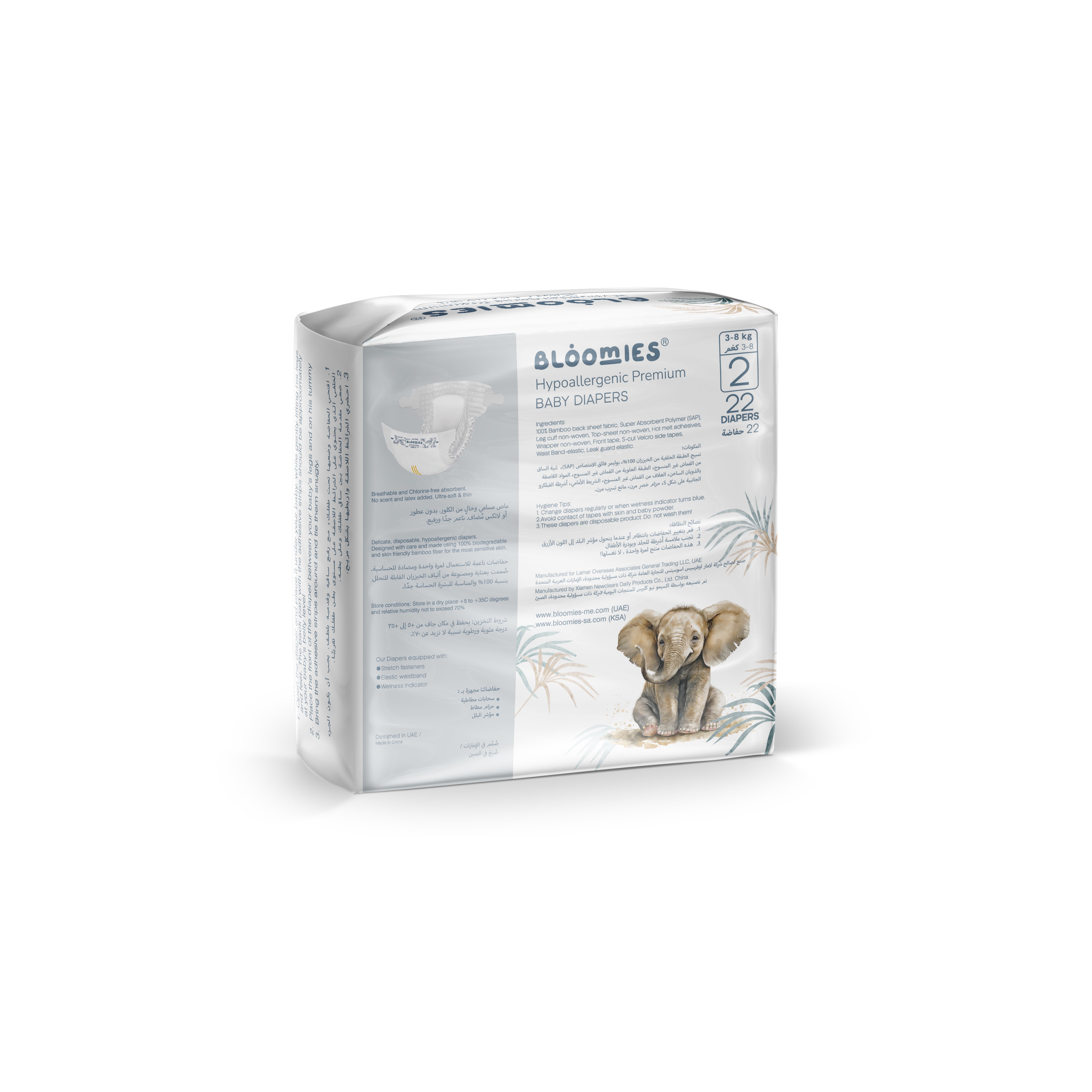 - Premium Features - Bloomies premium diapers include stretch fasteners, Super Absorbent Polymer (SAP), an elastic waistband, and a wetness indicator