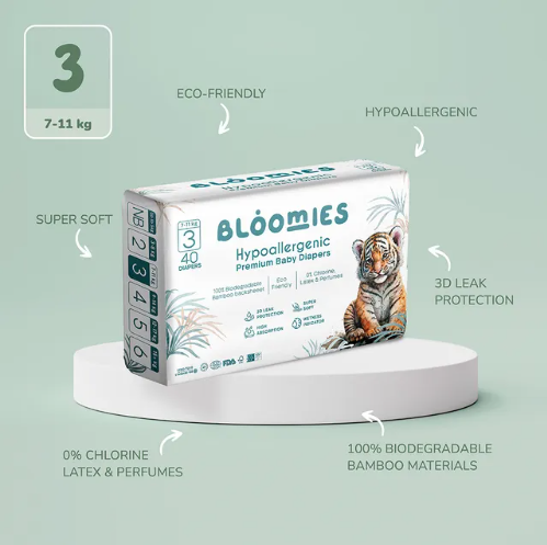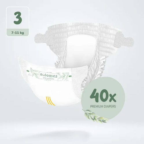 - Eco-friendly - Bloomies Premium Baby Diapers are made with a 100% bamboo back sheet