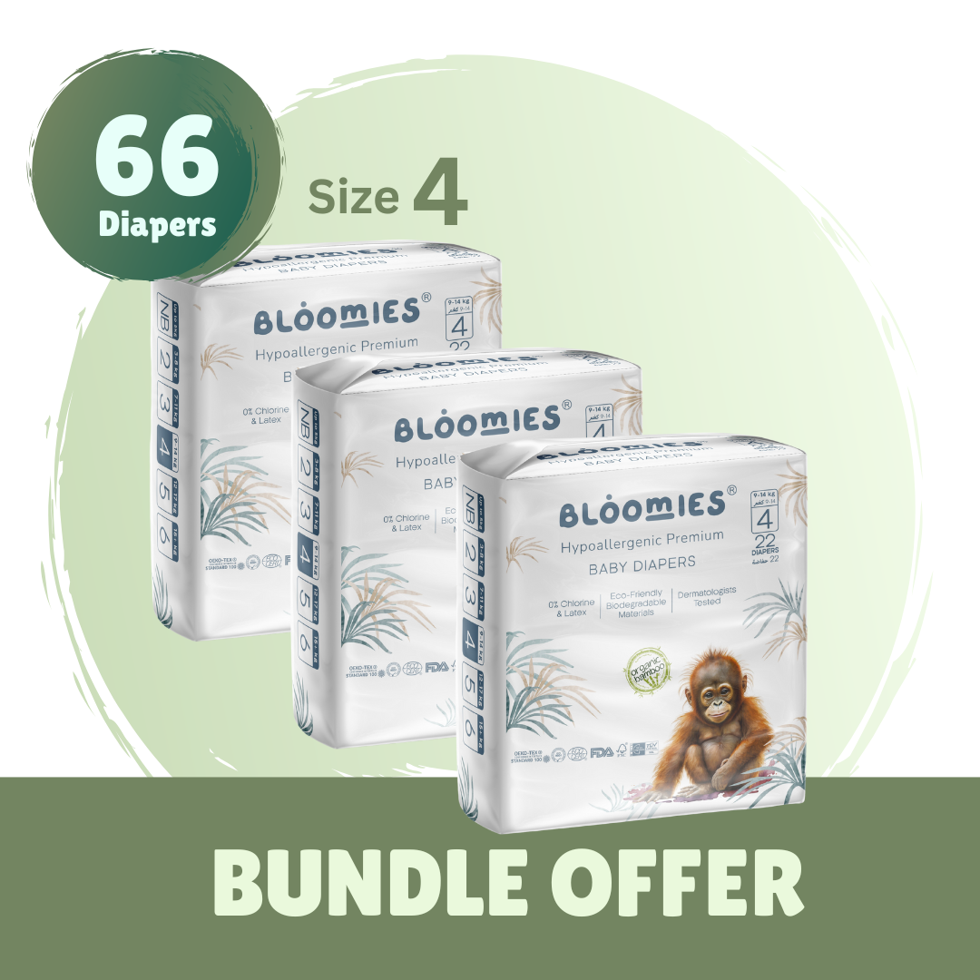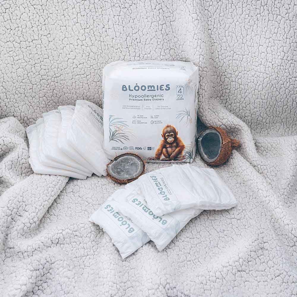 - Eco-friendly - Bloomies Premium Baby Diapers are made with a 100% bamboo back sheet