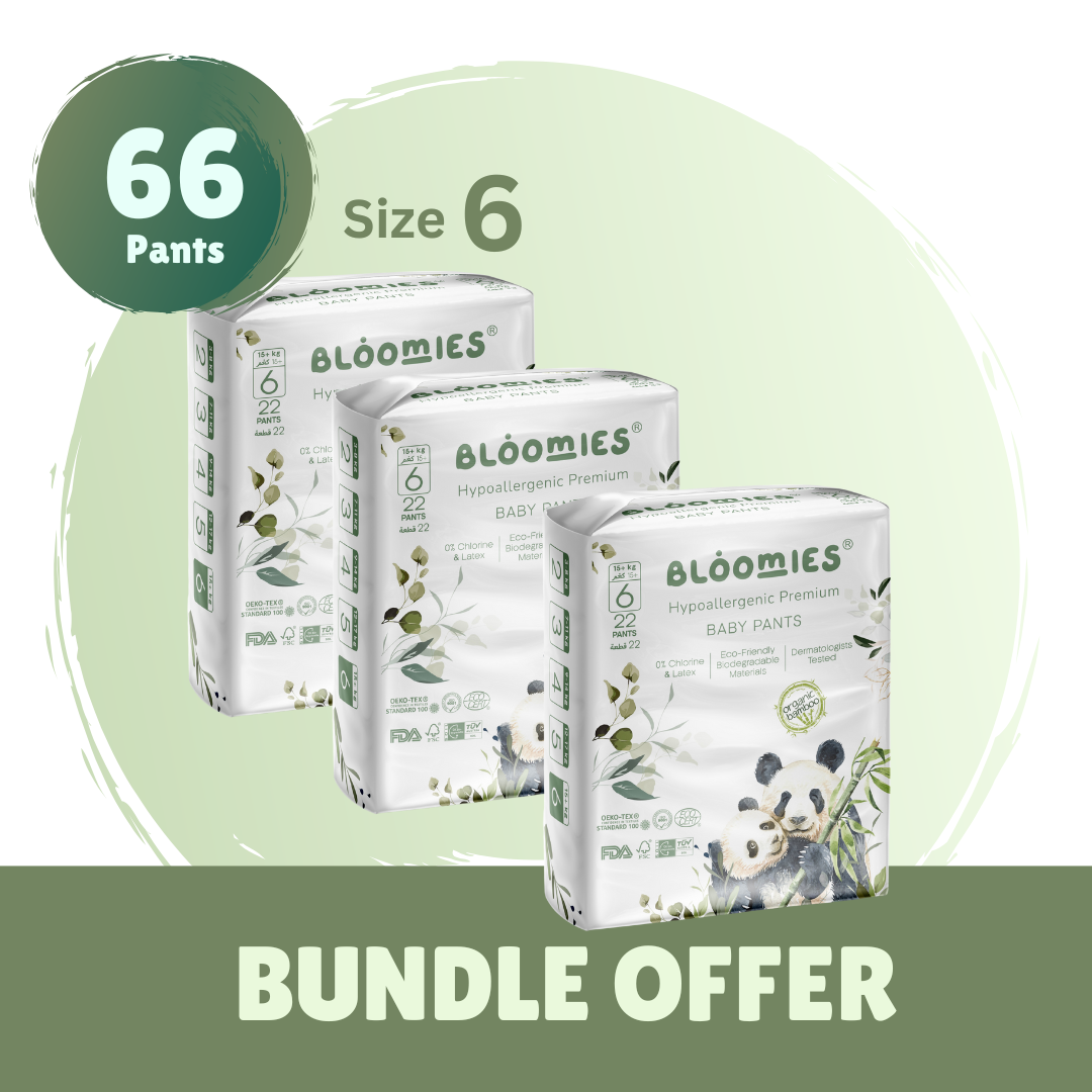 Bloomies Organic Bamboo Baby Pants Size 6 (15kg+ baby) - 66pcs