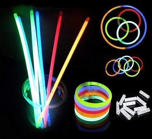 - GLOW IN THE DARK BRACELETS– Light up the night with these fun and vibrant glow in the dark party favors! Each glow stick party pack contains an assortment of different neon colors. Bend and shake to activate. Use the connectors to form glow bracelets and necklaces.