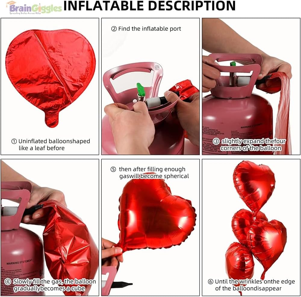 - EASY INFLATION – Featuring a convenient self-sealing valve, these heart balloons are easy to inflate with air or helium, ensuring a hassle free decorating experience and allowing you to create stunning valentines day décor effortlessly.