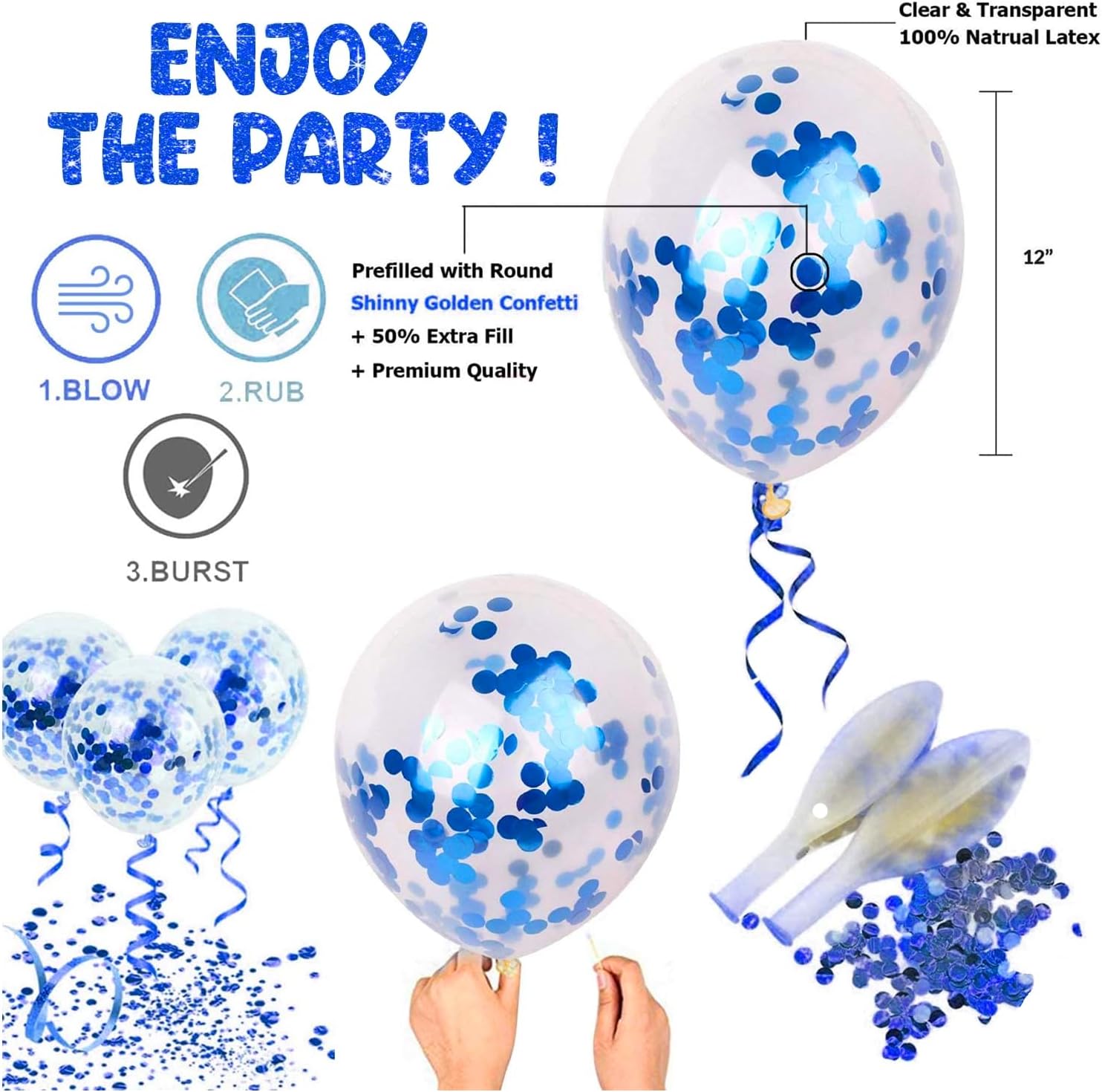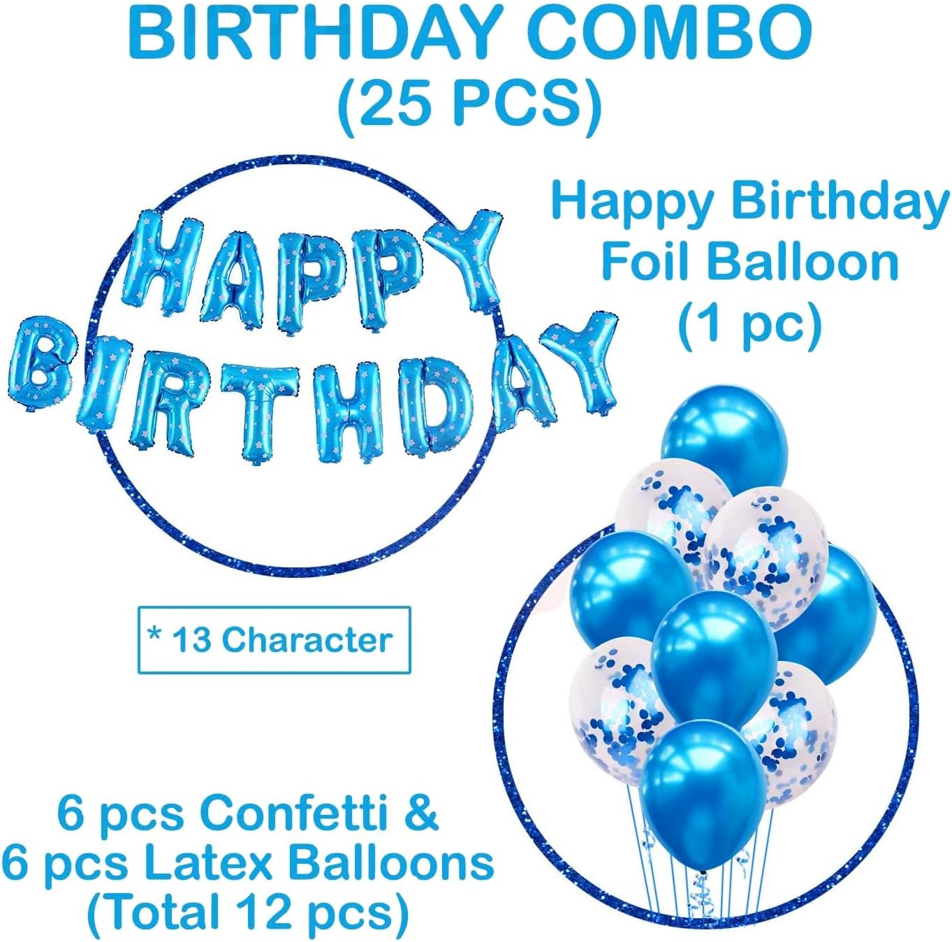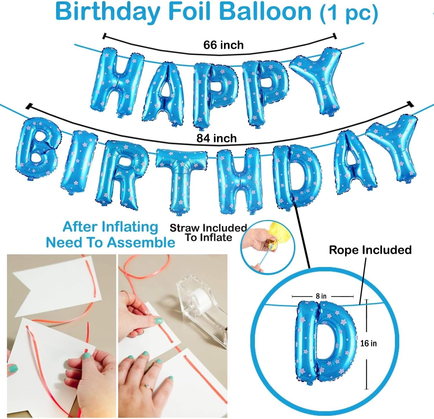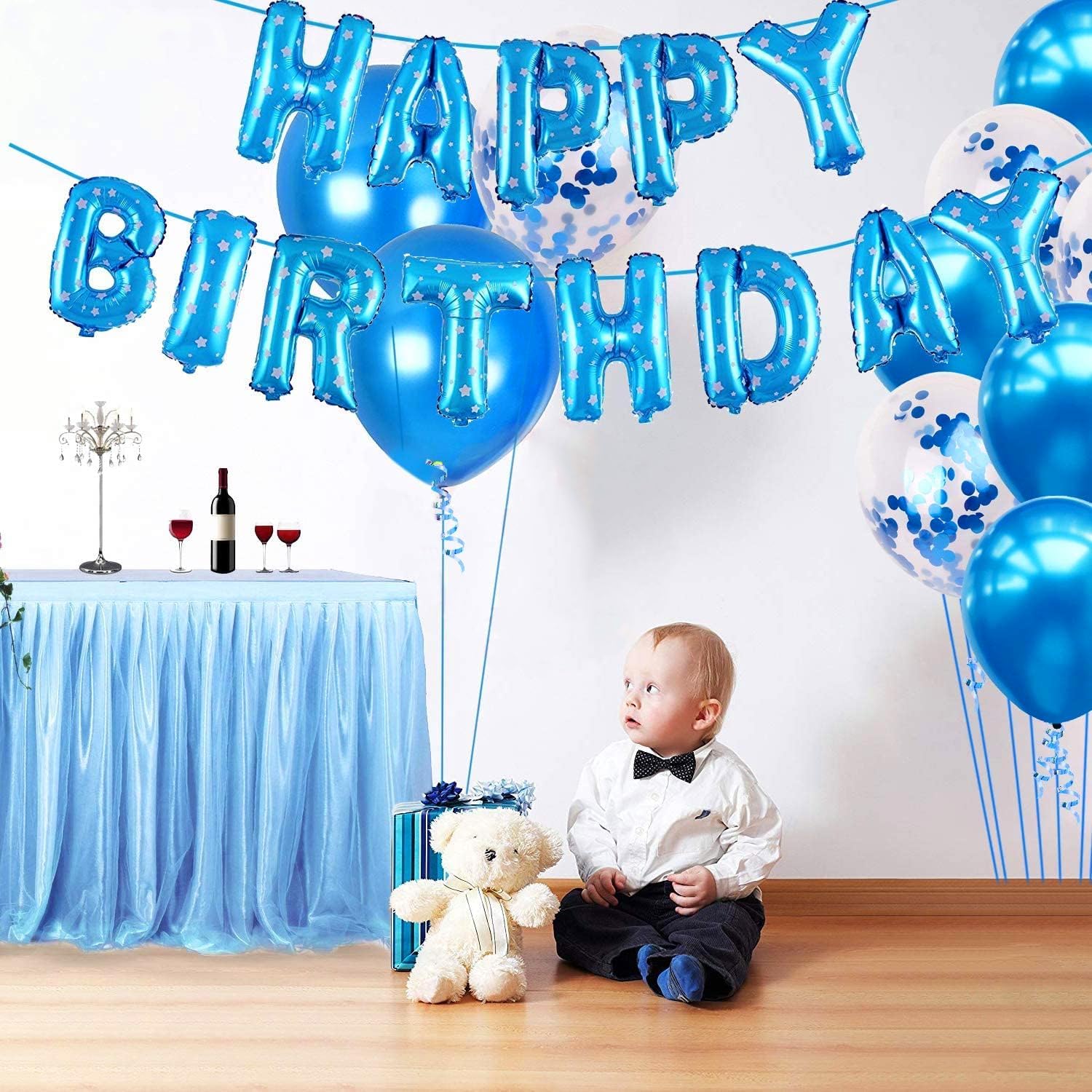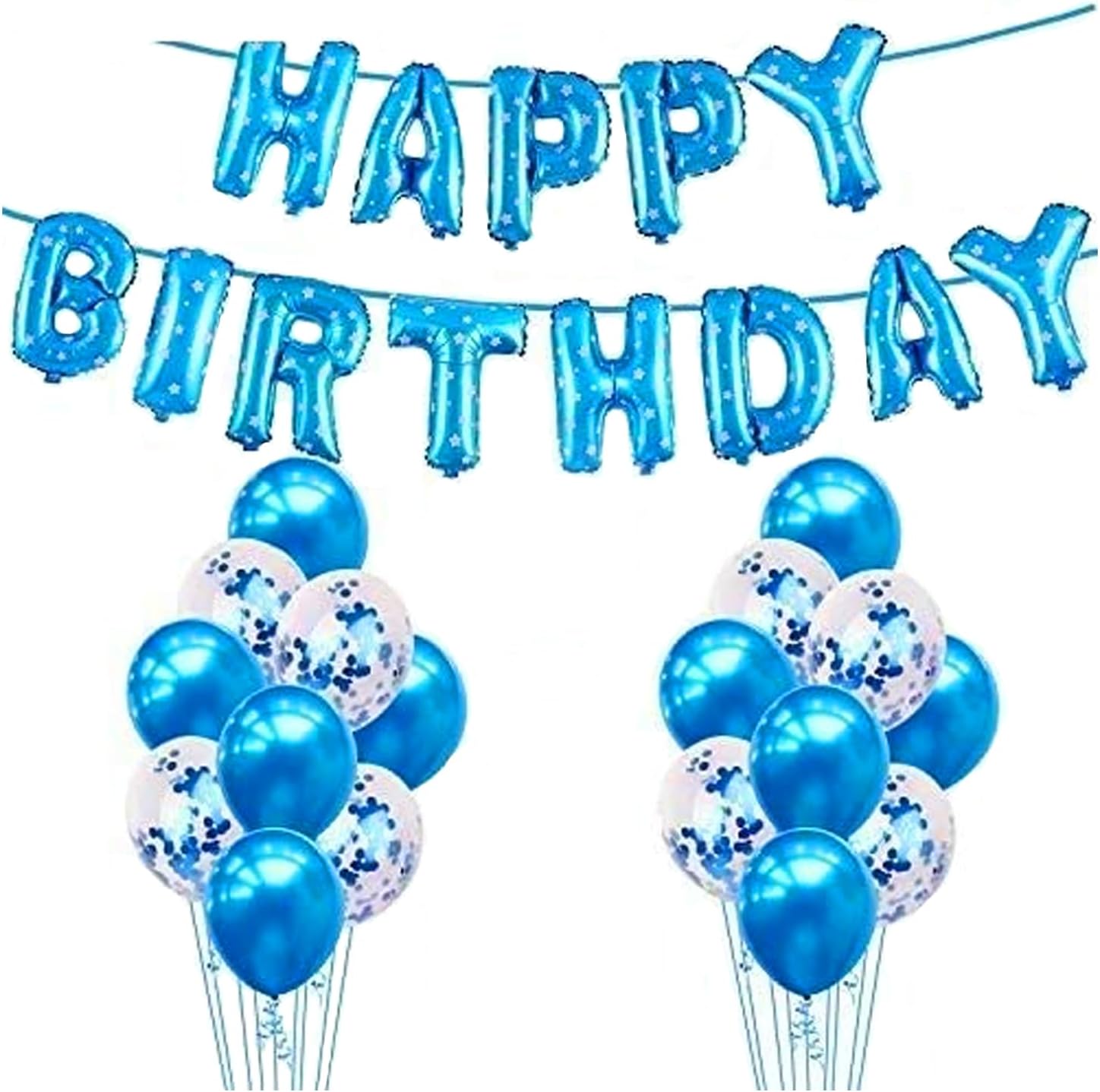 - COMPLETE BIRTHDAY BALLOONS SET: Includes 13 self-sealing letter balloons (16” each) to create a stunning Happy Birthday Banner, 12 vibrant blue latex and confetti balloons, and a ribbon for effortless assembly.