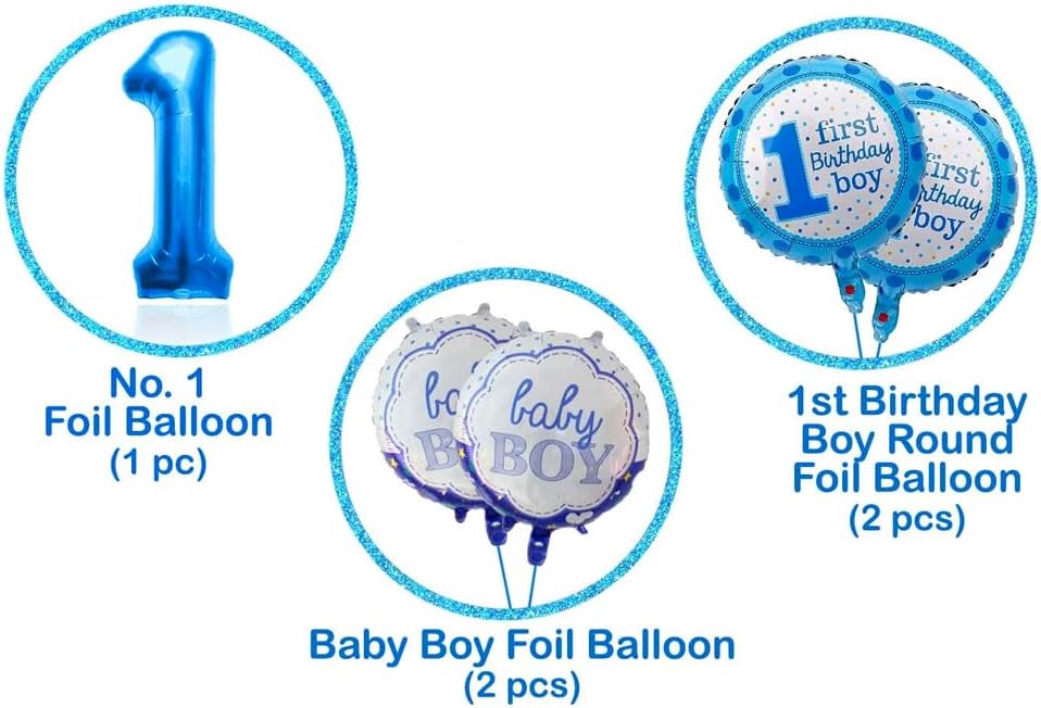 1st Happy Birthday Decoration Combo Set for Baby Boy. We have put all 1st birthday decorations together to save you time and money, All you need to add now is a cute outfit and a cake for your baby boy to smash! And we know you will love these Baby Boy 1st Birthday Decorations and we make every effort to make sure you receive a perfect set of Birthday Decorations.