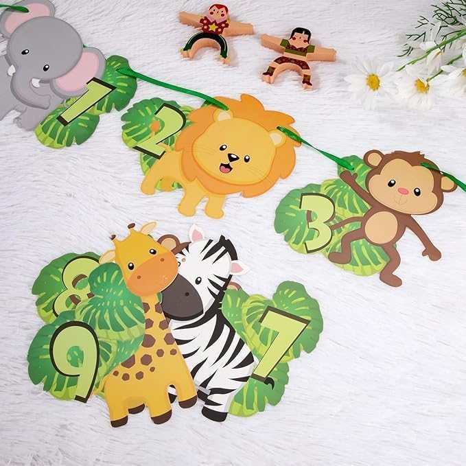 - [EASY TO INSTALL] Jungle theme birthday banner garland are pre-assembled, just directly decorated on walls, windows, trees and party tables or set as party table centerpieces, nicely match with your other safari-themed ornaments and create an active party atmosphere.
