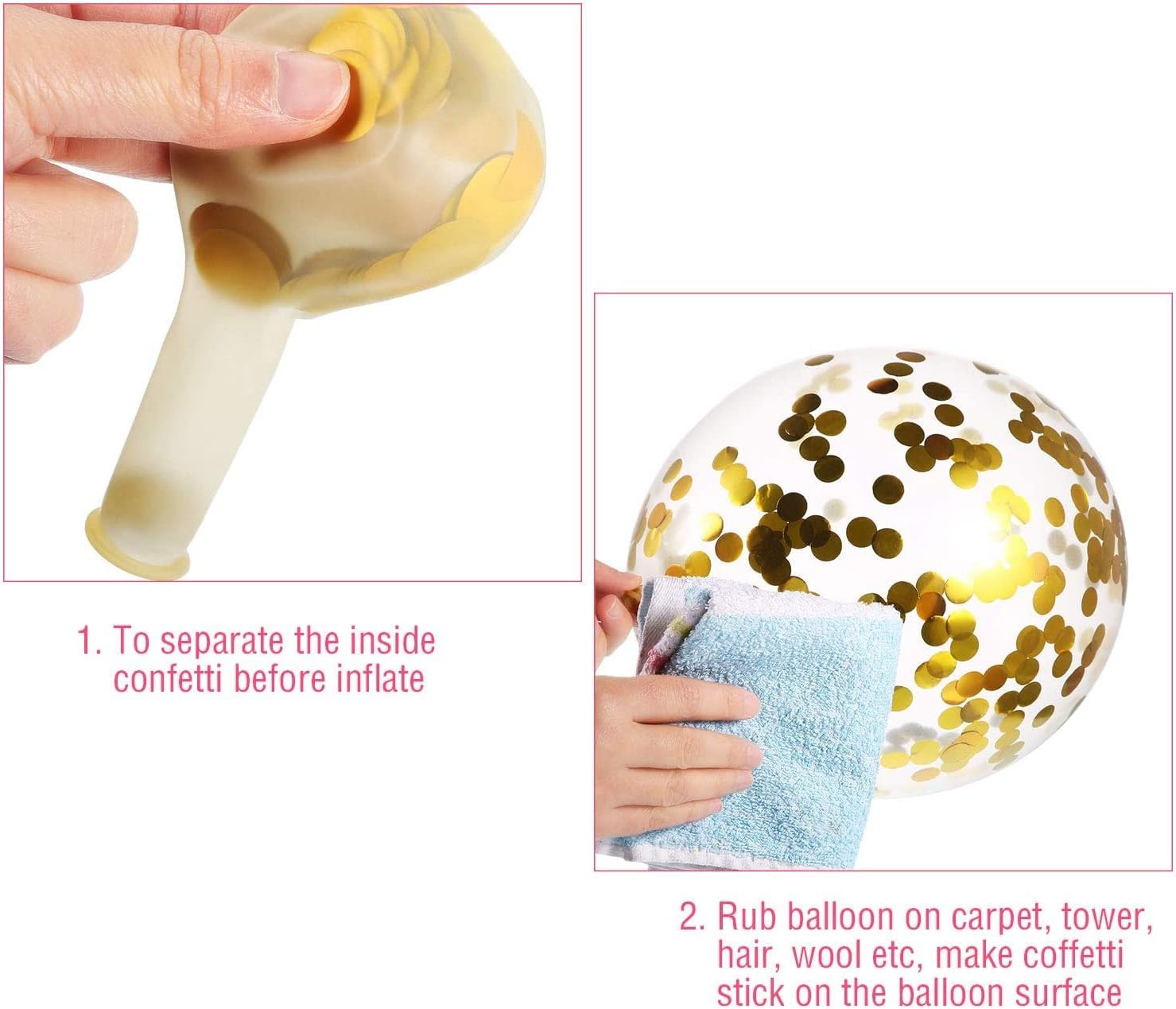 Pro Tip: For confetti balloons, rub the inflated balloons gently with a cloth or towel to create static, making the confetti stick to the sides for a more festive effect.