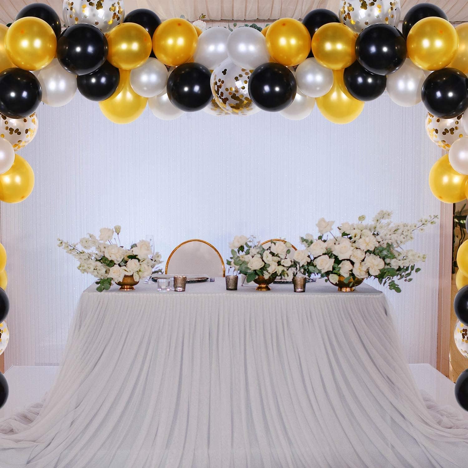 - SIZE: 10 In (25.4 cm) each white, gold, and black metallic balloons and 12 In (30.5 cm) each gold confetti balloons, perfect for creating a balanced and elegant baloon arch.