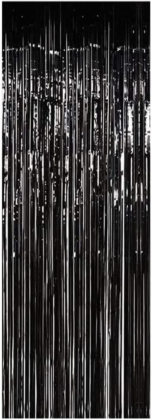Brain Giggles Black Metallic Foil Fringe Curtain Pack of 2– 6Ft x 3Ft Self Adhesive Tinsel Streamers Party Backdrop for Birthday, Bachelorette, Wedding, Baby Shower, Eid, Graduation Party Decorations - Brain Giggles Black Metallic Fringe Curtain – Create a Glamorous Party Backdrop!