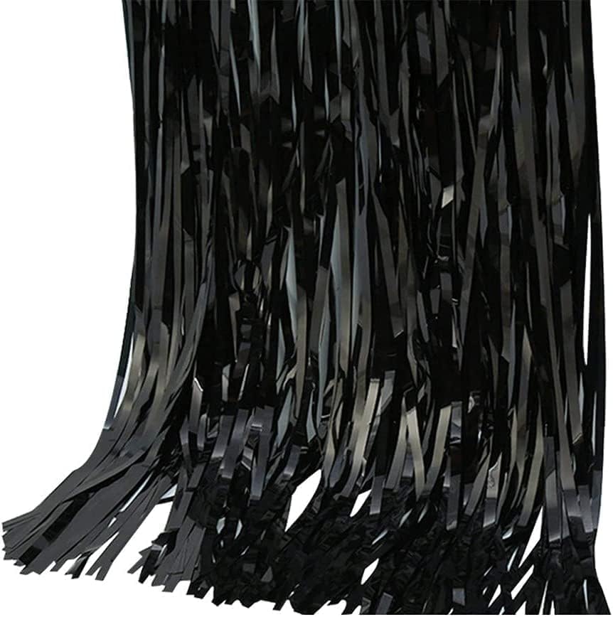 - Package Includes:2 x Black Metallic Foil Fringe Curtains