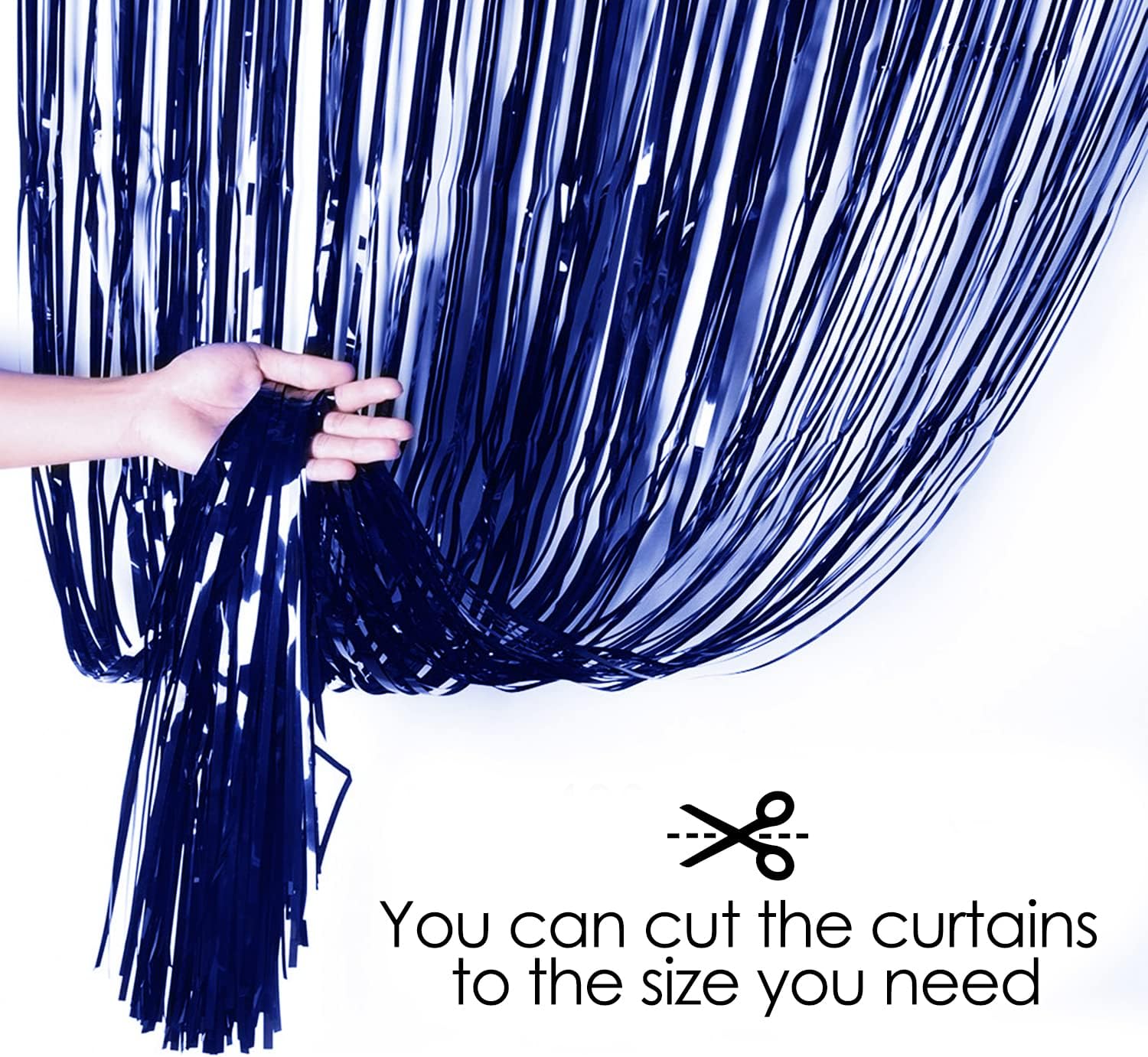 - Package Includes:2 x Blue Foil Fringe Curtains