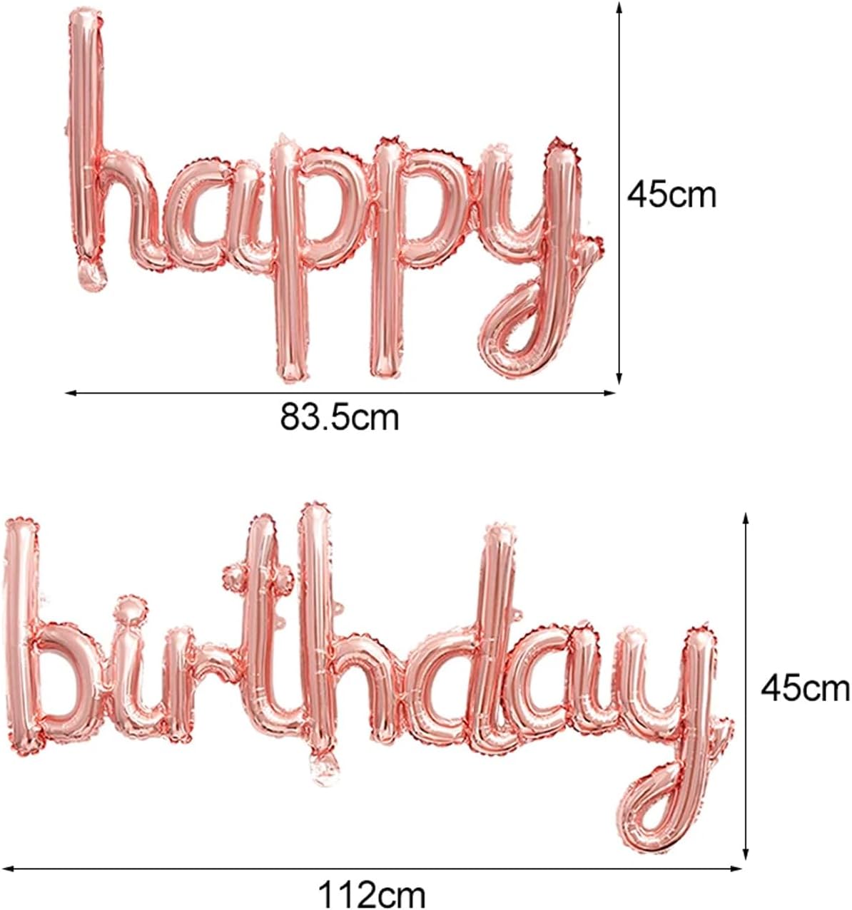 - HAPPY BIRTHDAY BANNER: Package includes rose gold "HAPPY BIRTHDAY" cursive letter balloons (uninflated), 1 pcs ribbon and 1 pcs straw to help blow the balloons.