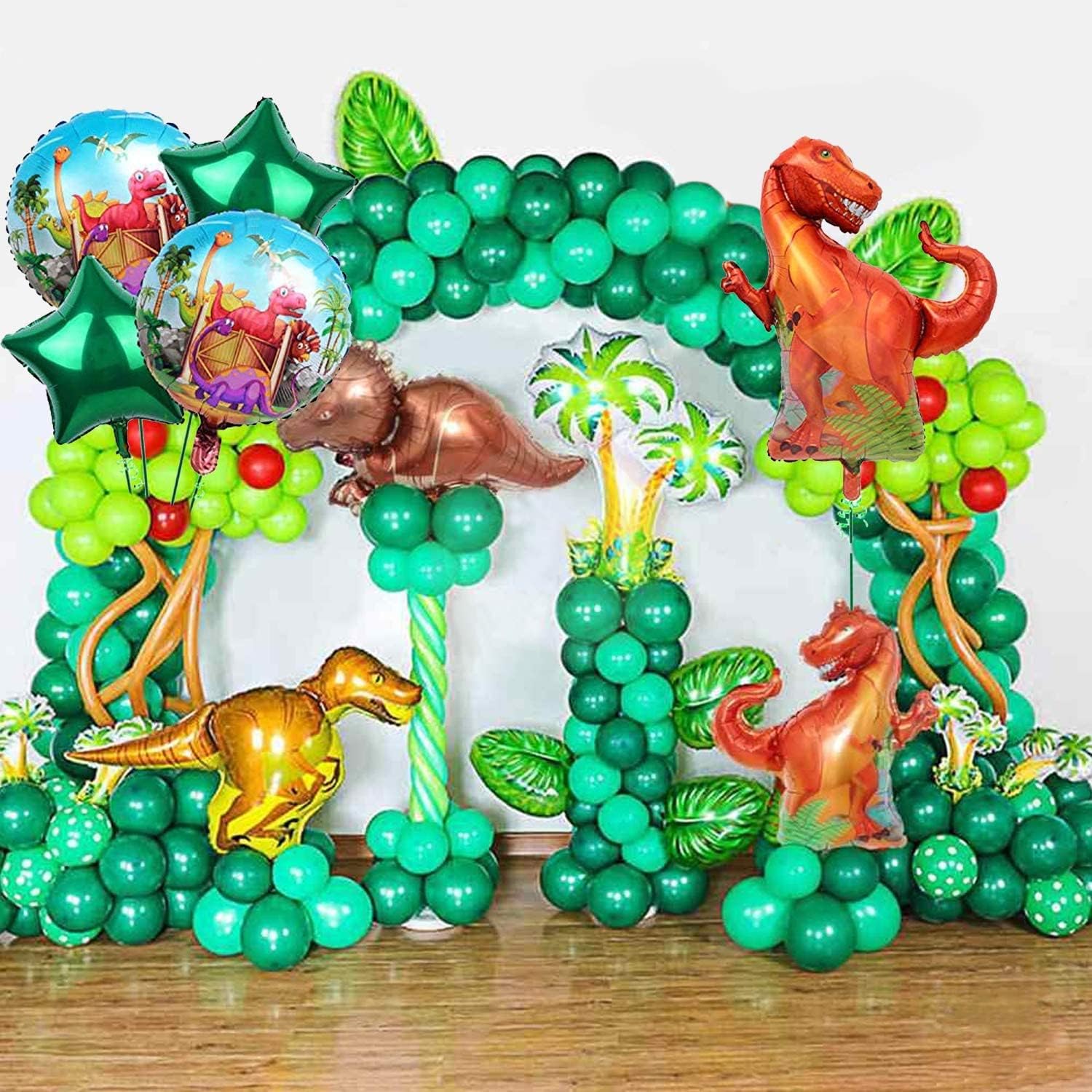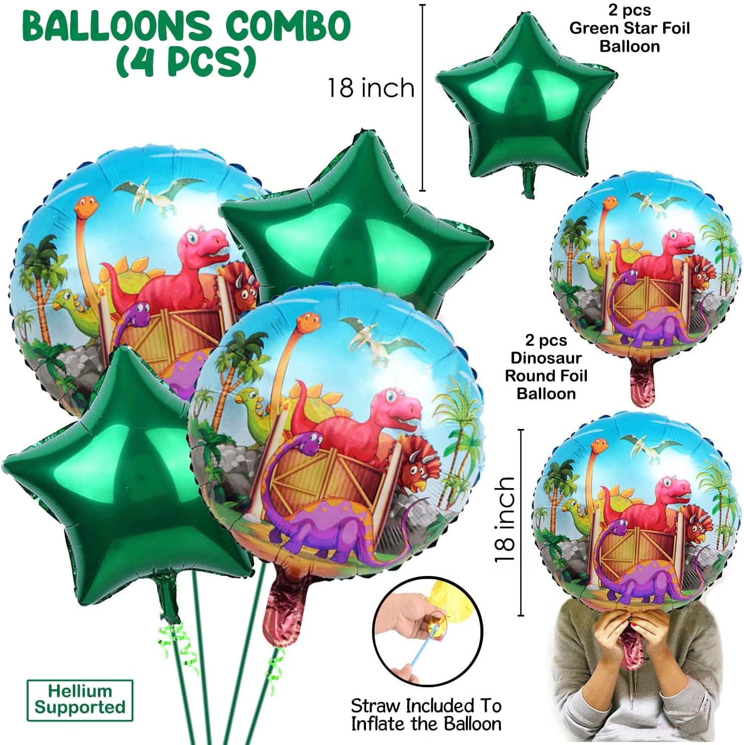 Dinosaur BALLOONS PACK INCLUDES: 2x Freen Star Foil balloons 2x Round Dinosaur balloons and 1x Dinosaur Balloon Big for Dinosaur birthday decorations.