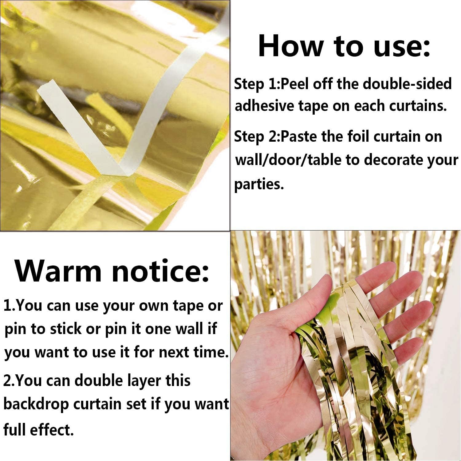 - EASY INSTALLATION: The foil curtain features an adhesive strip on top for easy installation on walls or doors, and can be hung separately or layered for a fuller look, making it perfect for creating a photo booth or party backdrop.