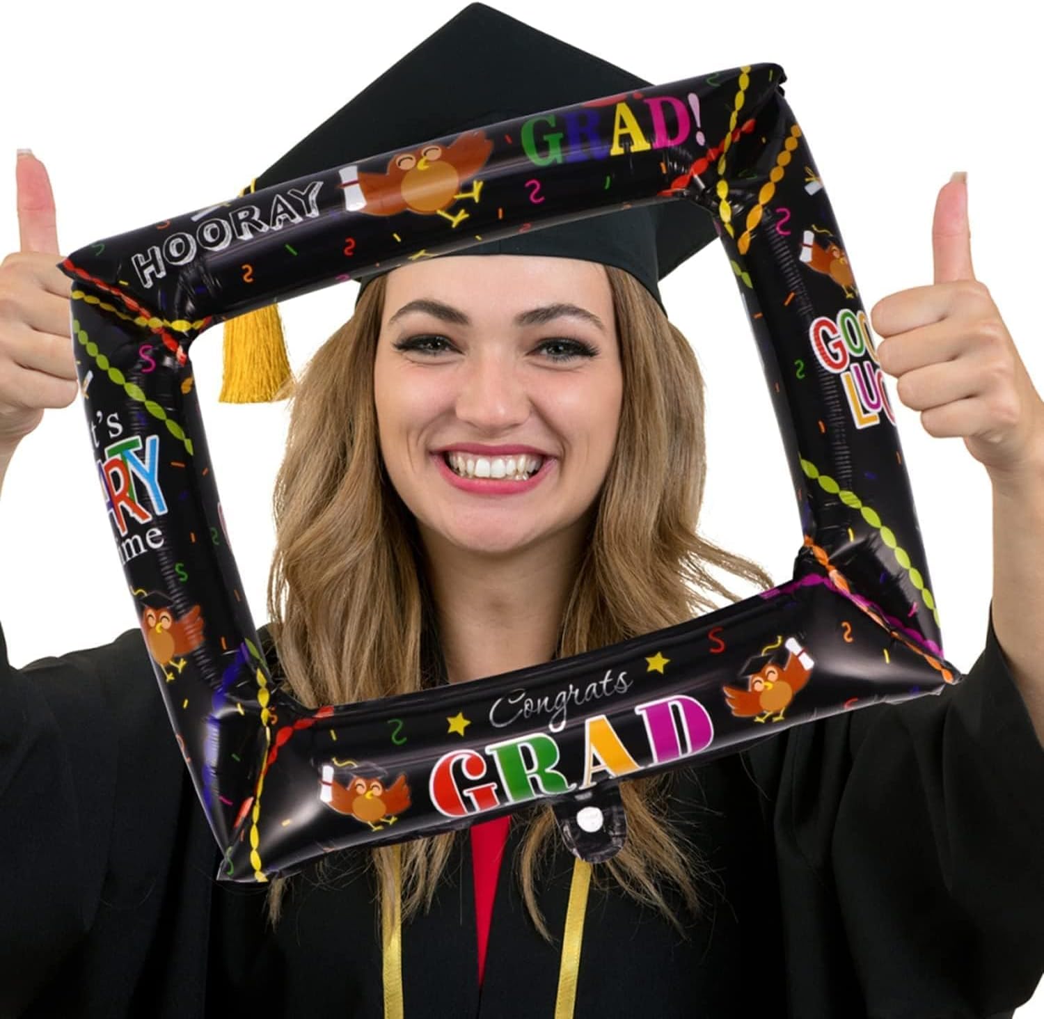 The Brain Giggles Graduation Inflatable Photo Frame Prop is a must-have party accessory for 2025 graduation celebrations. With fun celebratory phrases like “YAY”, “Congrats”, “Finally!”, “Hats Off” and “Woo Hoo!” printed all around, it turns every photo into a cherished memory.