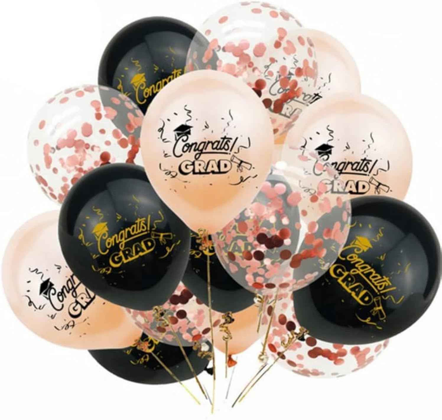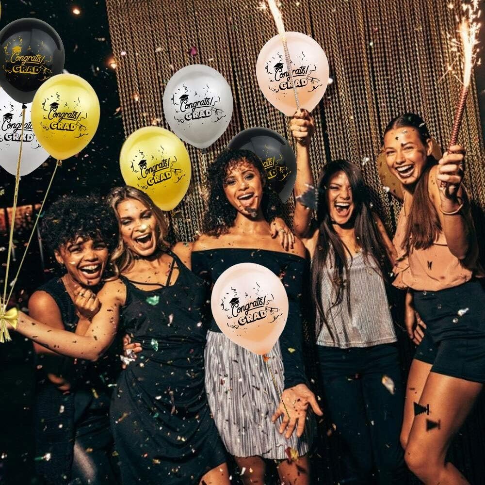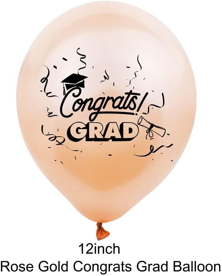 - GRADUATION BALLOONS ROSE GOLD – The Graduation balloons kit includes 15 graduation balloons, out of which 5 are black congrats grad balloons, 5 are rose gold congrats grad balloons and 5 rose gold confetti balloons. These Congrats Grad graduation balloons are perfect to add to your Graduation Decorations 2025.