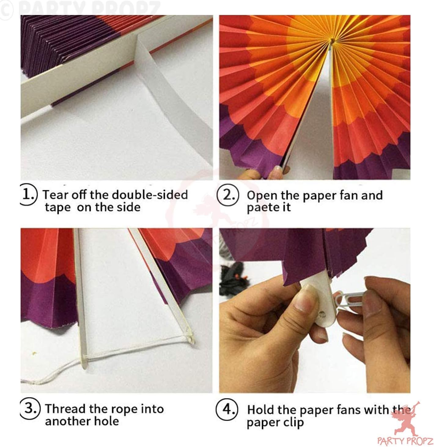 - EASY TO ASSEMBLE: These paper fans come pre-attached with strings and easy-to-secure clips for quick setup and hassle-free storage. These are easy to hang, remove, or reposition for a perfect backdrop.