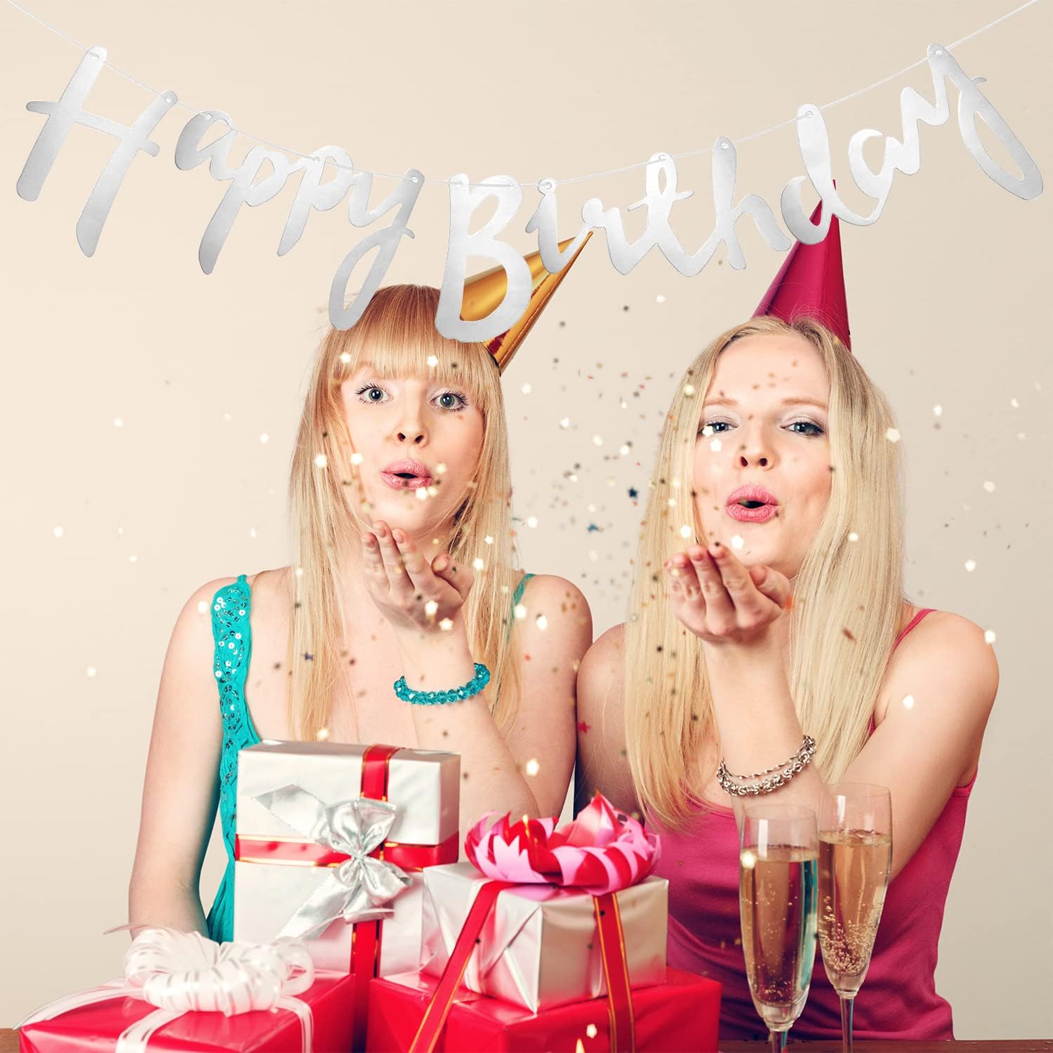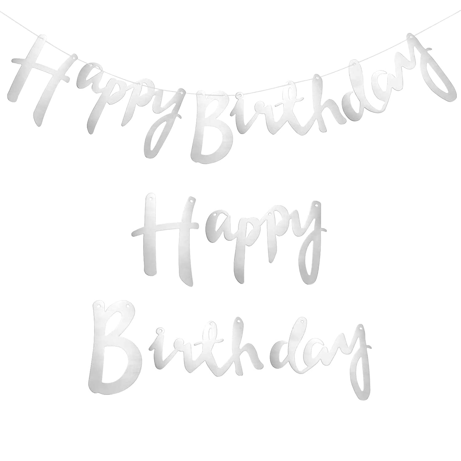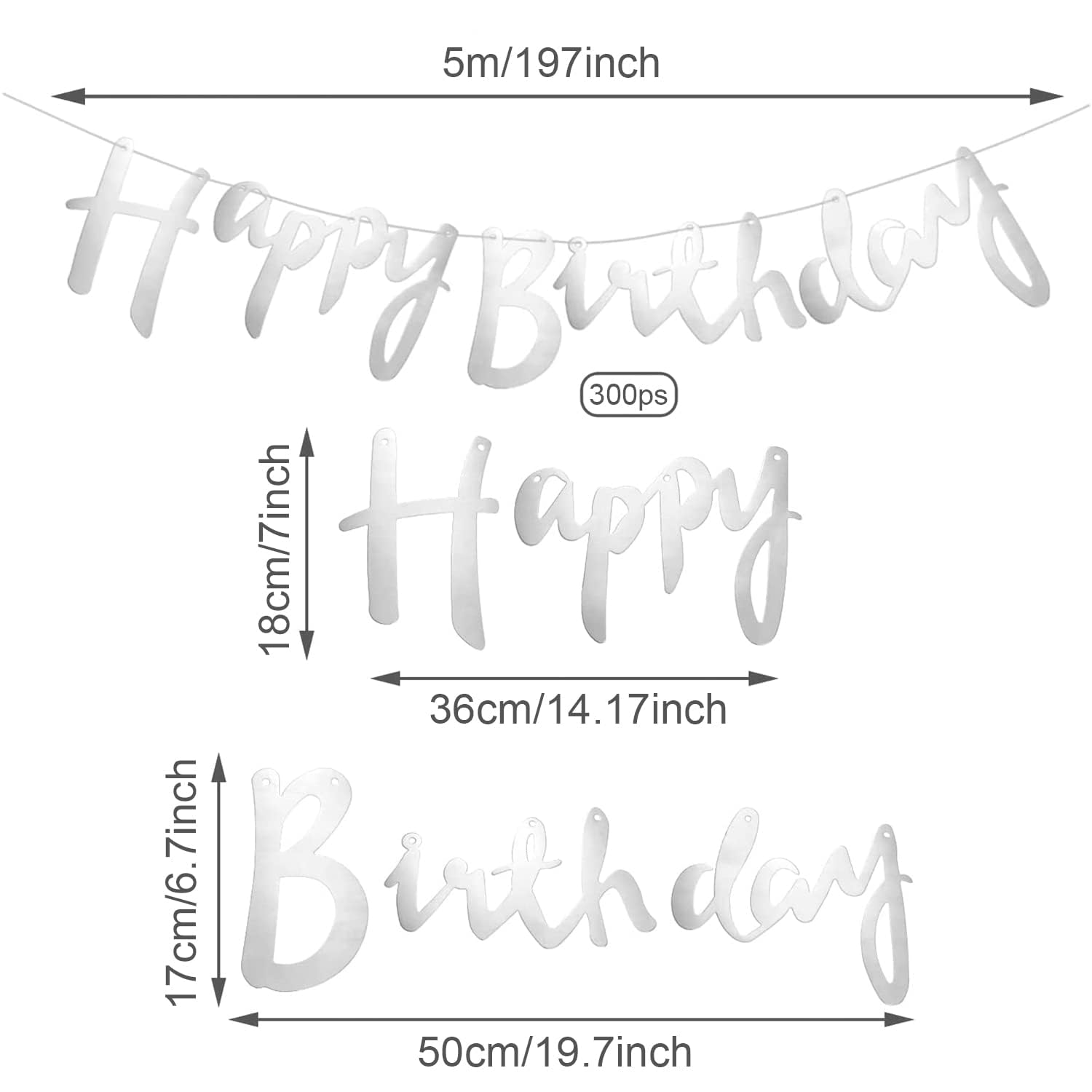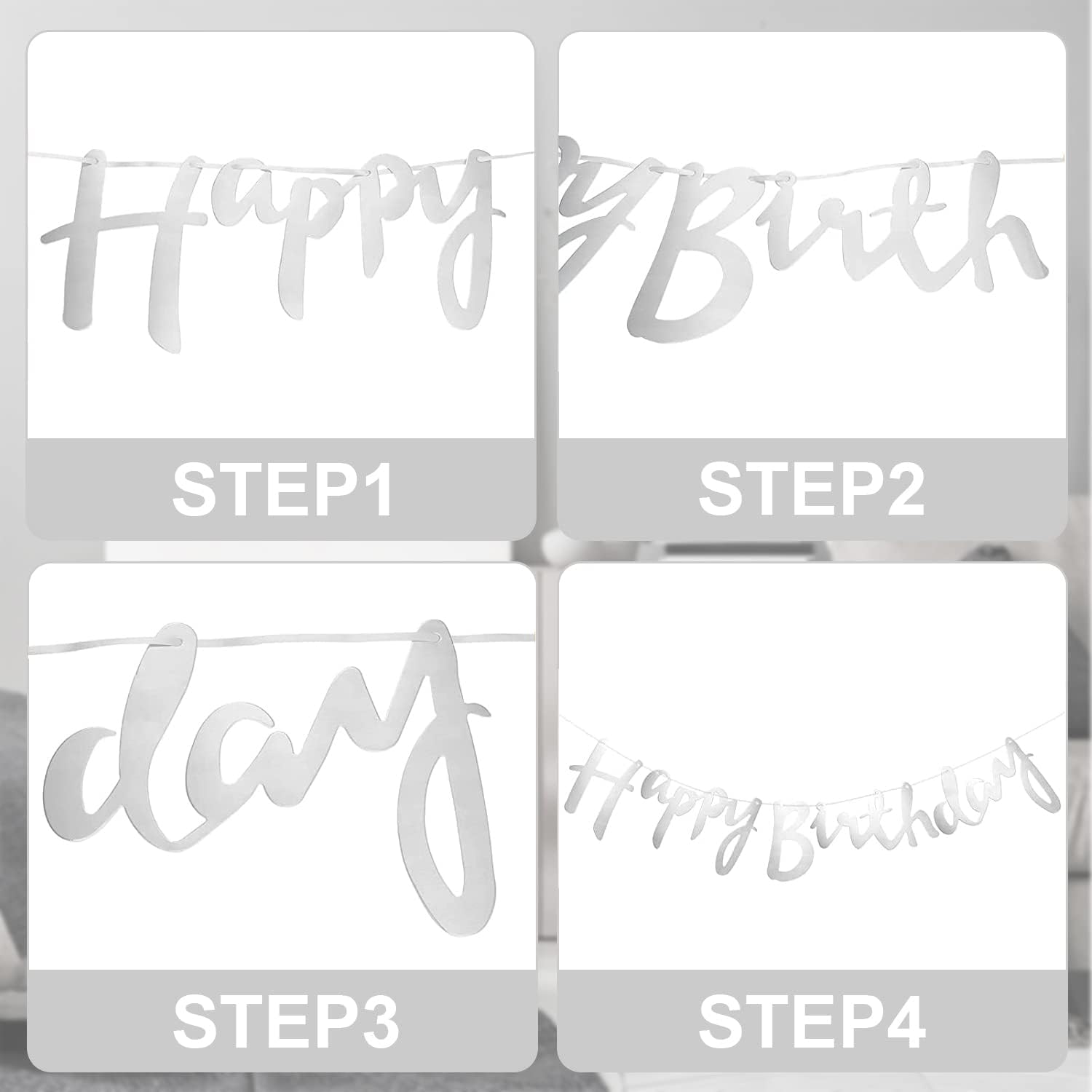 - Package includes: Metallic silver Happy Birthday Banner and 1 pc ribbon for easy hanging.