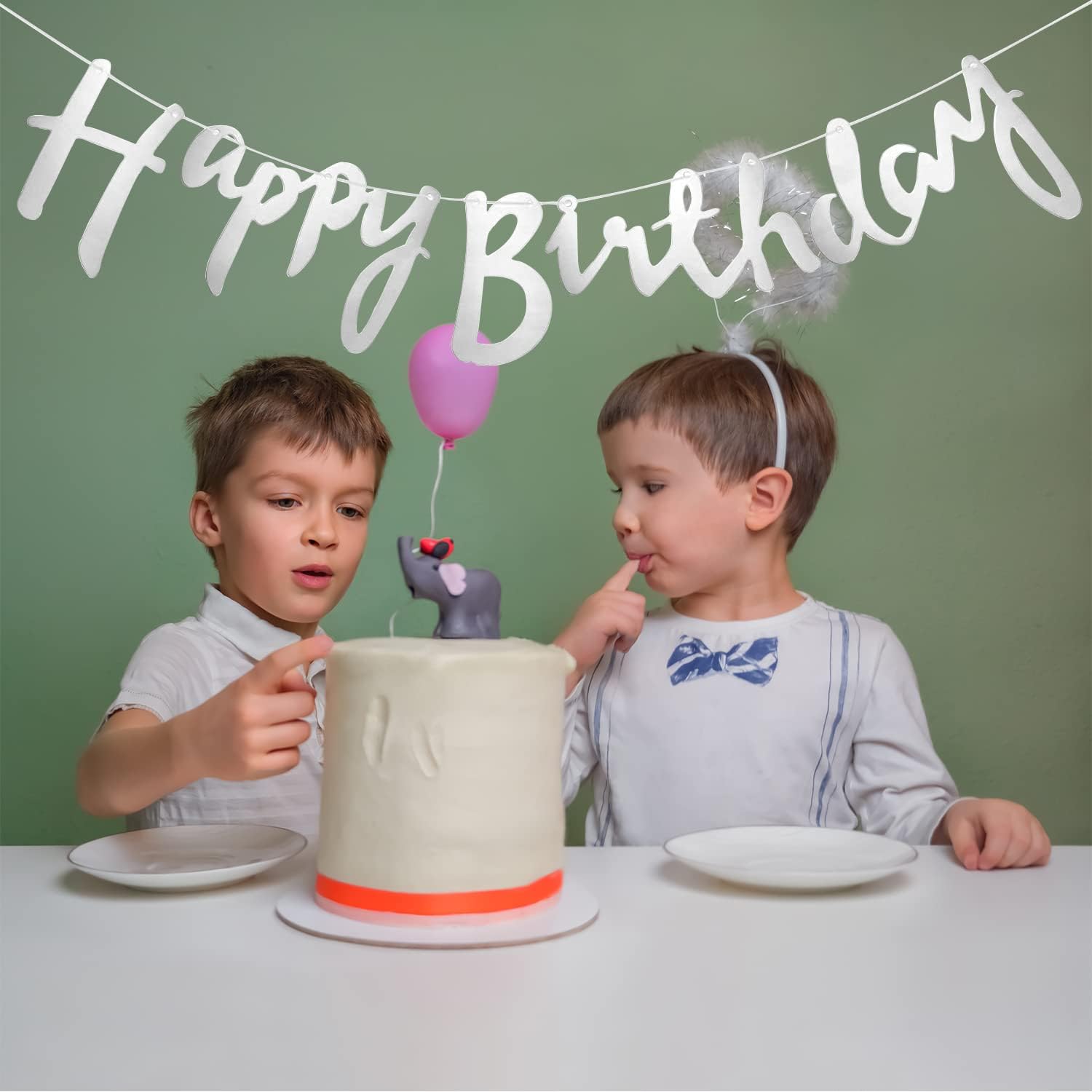 Make Your Birthday Special with Brain Giggles Happy Birthday Banner! Brain Giggles Silver Happy Birthday Banner – Cardstock, Reusable Metallic Birthday Sign for Wall Decoration - Birthday Party Decoration for Kids and Adults