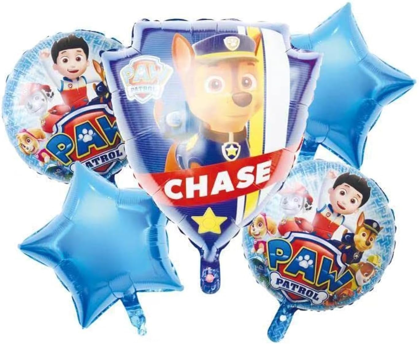The big round foil balloons size is 20 inches and the Paw character Chase size is 29 inches and the star foil balloons size is 17 inches.