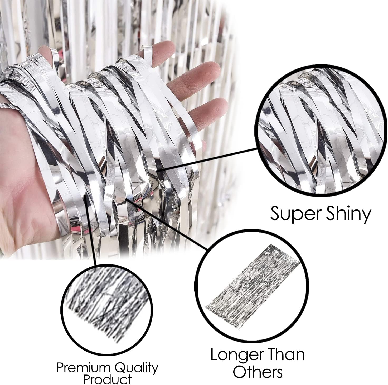 - PREMIUM QUALITY: Made from tinsel material with a sparkling finish, our metallic curtains are non-toxic, odorless, fade-resistant, and built to last. Perfect for any party decoration.