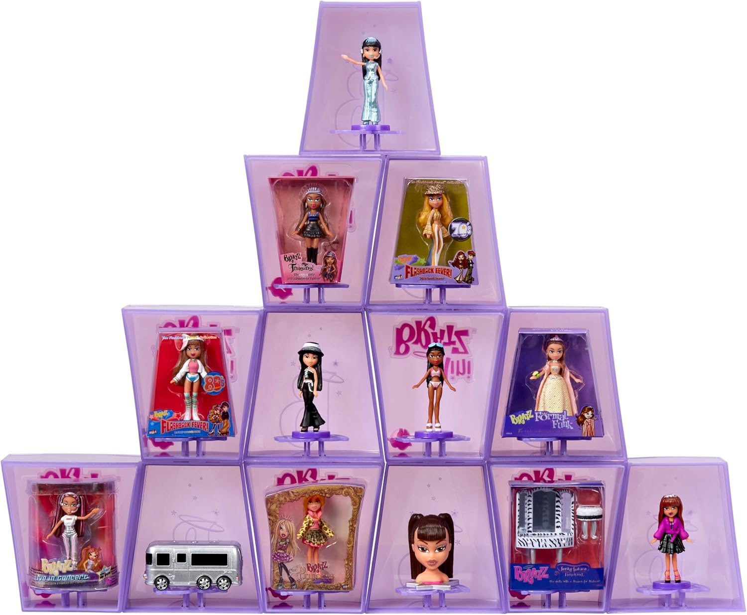 - REUSABLE & BLIND PACKAGING: Each mystery trapezoid capsule turns into a stackable display and comes with two Mini Bratz™ in mini replica packaging and a collector’s guide! Now in a super stylin’ new lavender color! Each package is blind, so you won't know which figures you get until you unbox them!