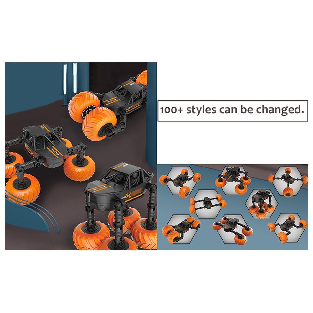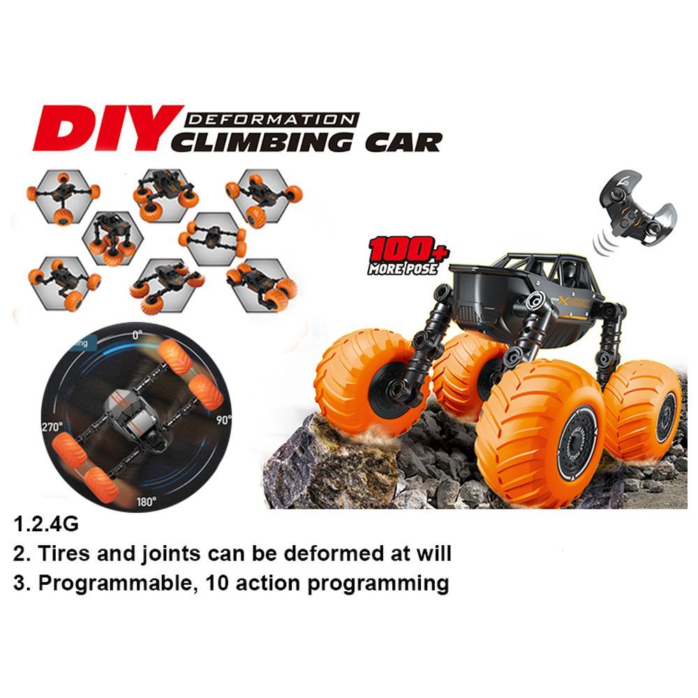 2.4G remote control Car with 4 Wheels & joints can be manually deformed into various positions and drive. Programming for 10 actions (forward/backward/turn left/turn right).