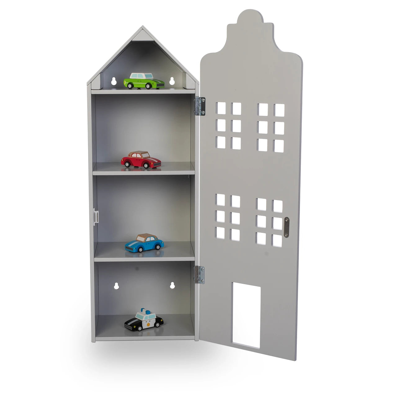 Dollhouse or wall-hanging closet? This beautifully designed Townhouse closet from the by ASTRUP series has many uses. Let your imagination roam free and create a small 4-story home for your dolls. The house can be used both as a smart dollhouse for the children's den, or as storage for knick-knacks, books or favourite toys. Please note: Screws are not included.