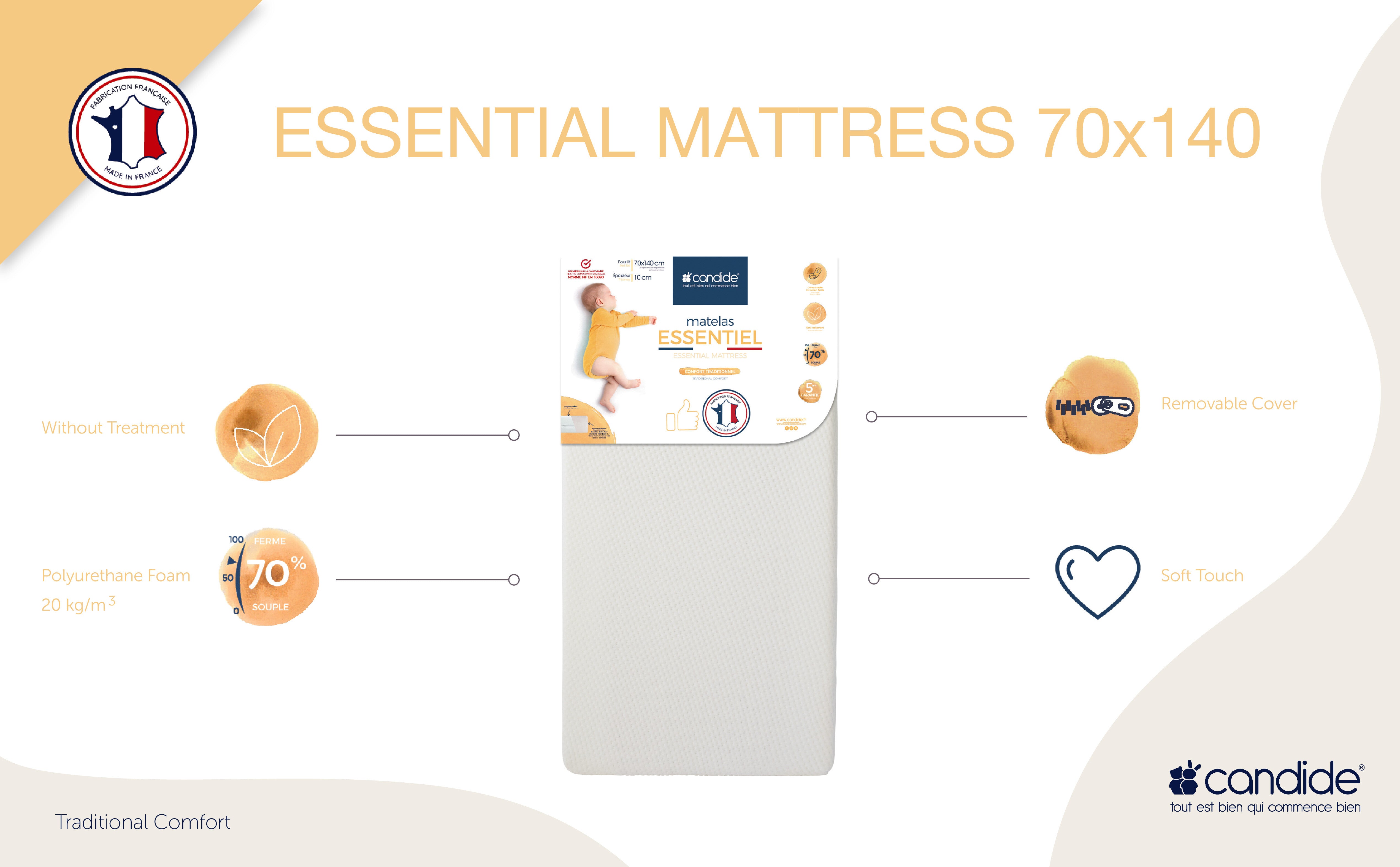 This mattress offers traditional comfort to baby during period of sleeps. It is made up of Polyurethane foam and the cover is sewn in polyester and polypropylene which is very soft for the baby's skin. The anti-mite and antibacterial feature is ideal for babies with sensitive skin. The cover is fully removable for easy cleaning and washing.