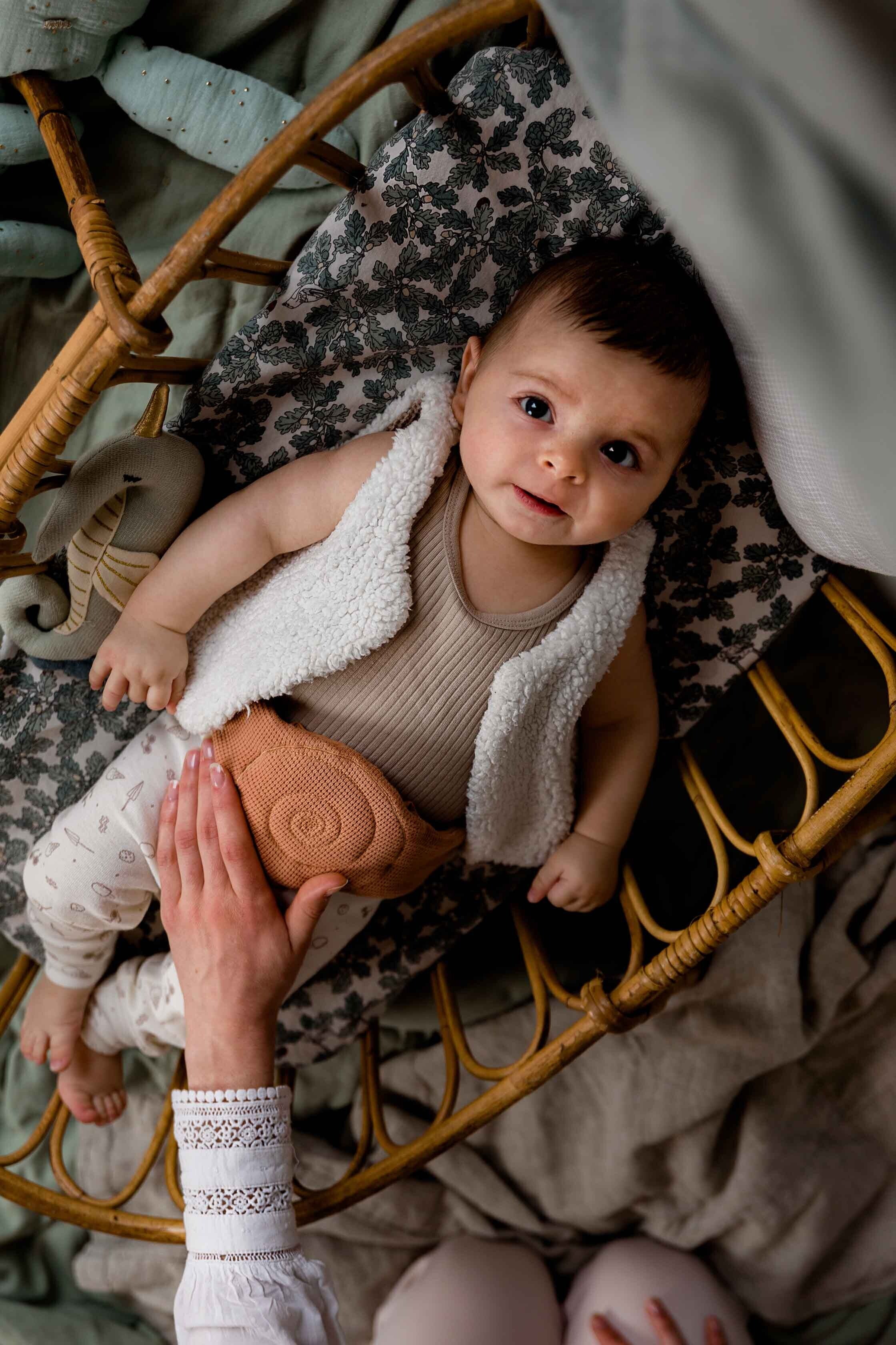 Practical: adjustable thanks to its hook-and-loop strips, the mini-hot water bottle stays in place on the tummy of infants.