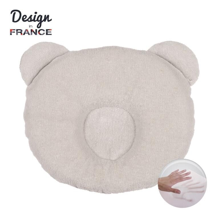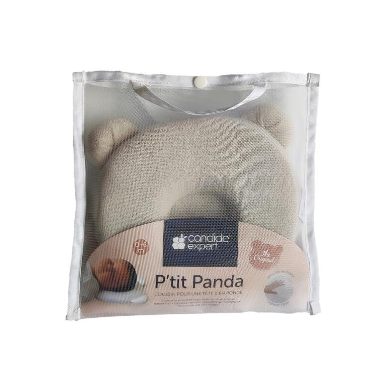 Candide's P'tit Panda white cushion will help baby keep a round head thanks to its memory foam. Baby's head is slightly raised. How to use the white