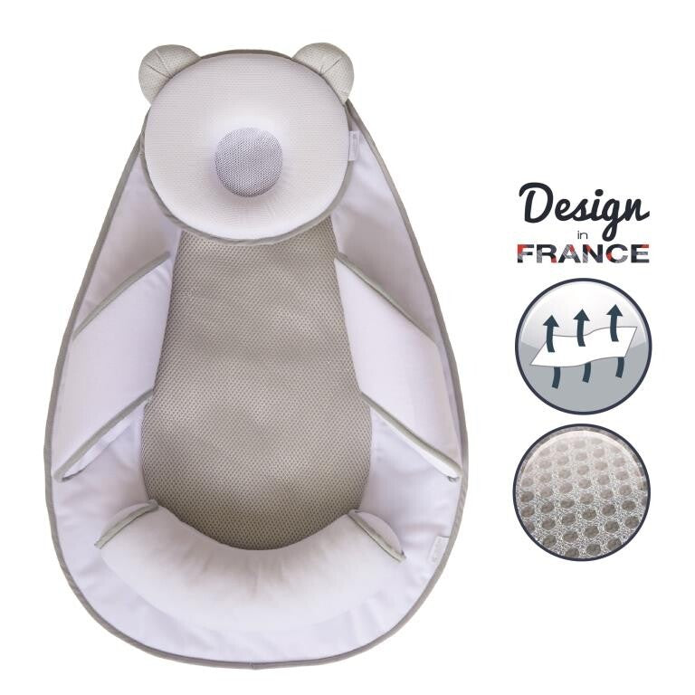 The Panda Pad Air + ensures a good natural sleeping position for babies. The foam wedges prevent baby from turning over and their bevelled shape allows a better position of the arms. The foot wedge allows baby's legs to be elevated to facilitate digestion. All the parts are removable and adjustable to the baby's body structure. Its memory foam cushion helps baby to keep a round head plus the 3D mesh support allows better air circulation.