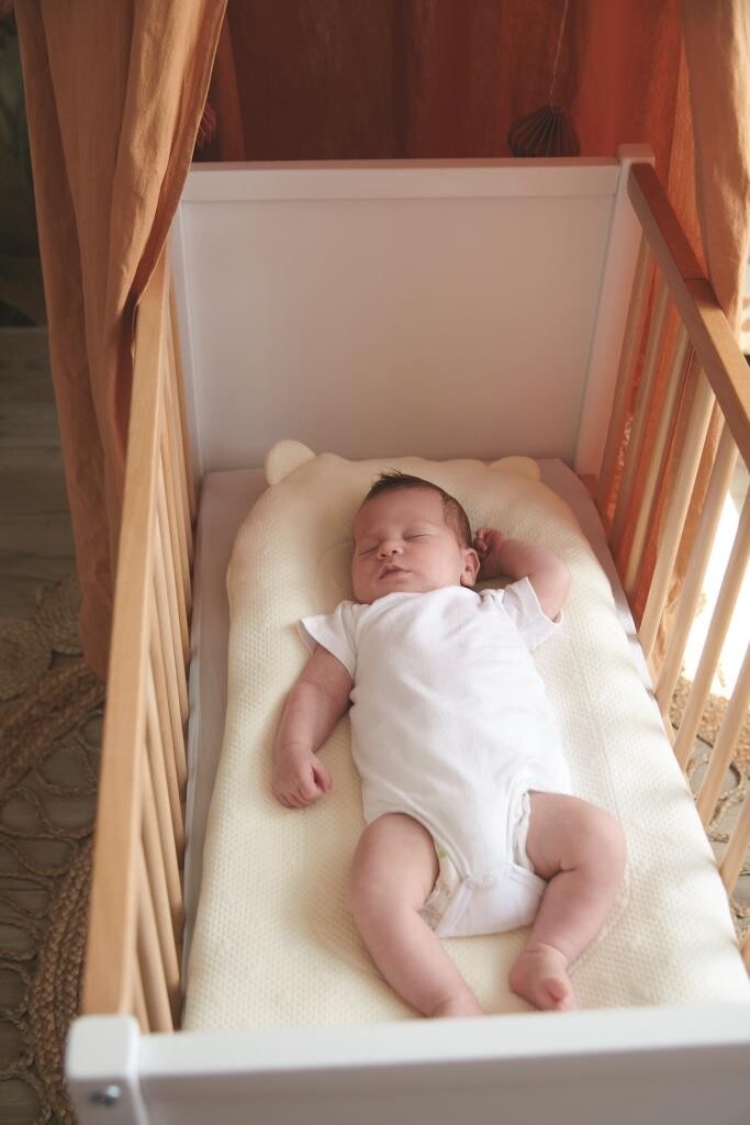 It conforms to the shape of the baby's body while providing support for the maintenance of his head and his back.