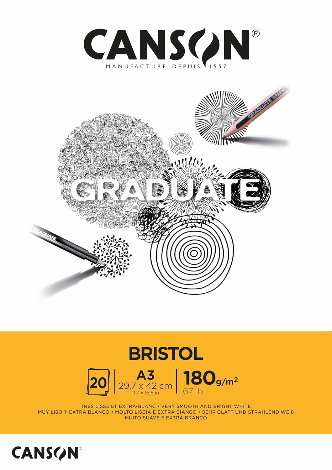 The Graduate Bristol pad is perfect to start and practice easily the technical drawing. With a extra-white and very smooth paper, it is ideal for precision drawing with pencils and felt pens or any other technique requiring a resistante smooth surface a sharp lines.