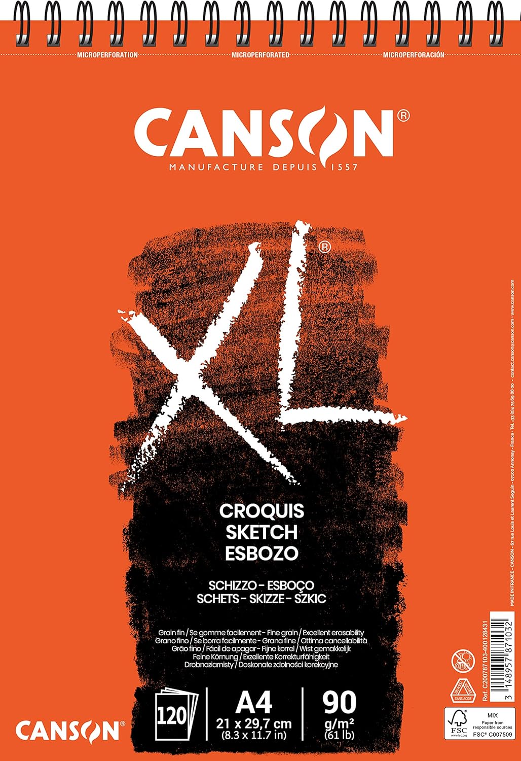 Canson Sketch XL is a lightweight 90gsm ivory white paper, designed for quick sketching, sketching or studying. It is a "bouffant" paper, i.e. it has a relatively high thickness for a low grammage. Its subtle grain matches perfectly with pencil, charcoal, blood or pastel.