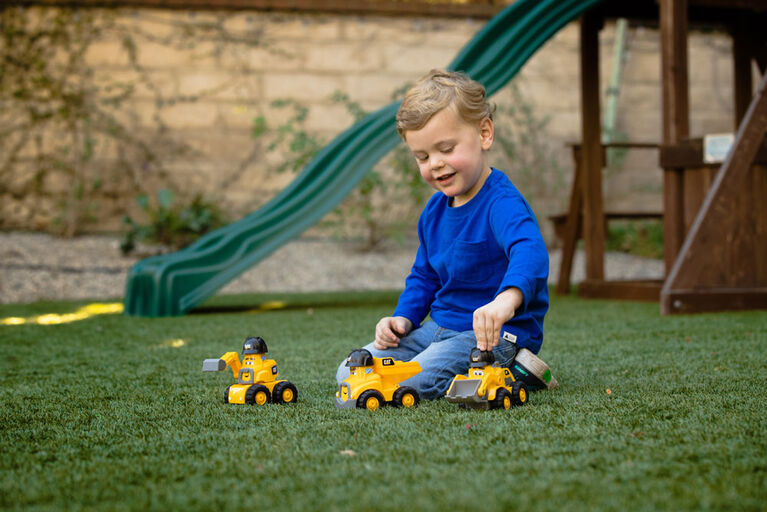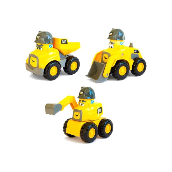 The 5 Cat Workin Pals are designed to make learning intuitive and fun as they develop your childs fine motor skills. With a press of the helmet each vehicle comes to life by moving either the vehicles dump bed, buckets, and or booms activating seven unique Kid-Vroom Soundsyour child will love! Watch their curiosity grow as they press the helmet again and again to see the pals in action! Real Cat machines are known for their high quality, these toys are no different, built to withstand the tough demands of rugged play these vehicles will be your childs go-to toy. Appropriate for ages 2 years and up.