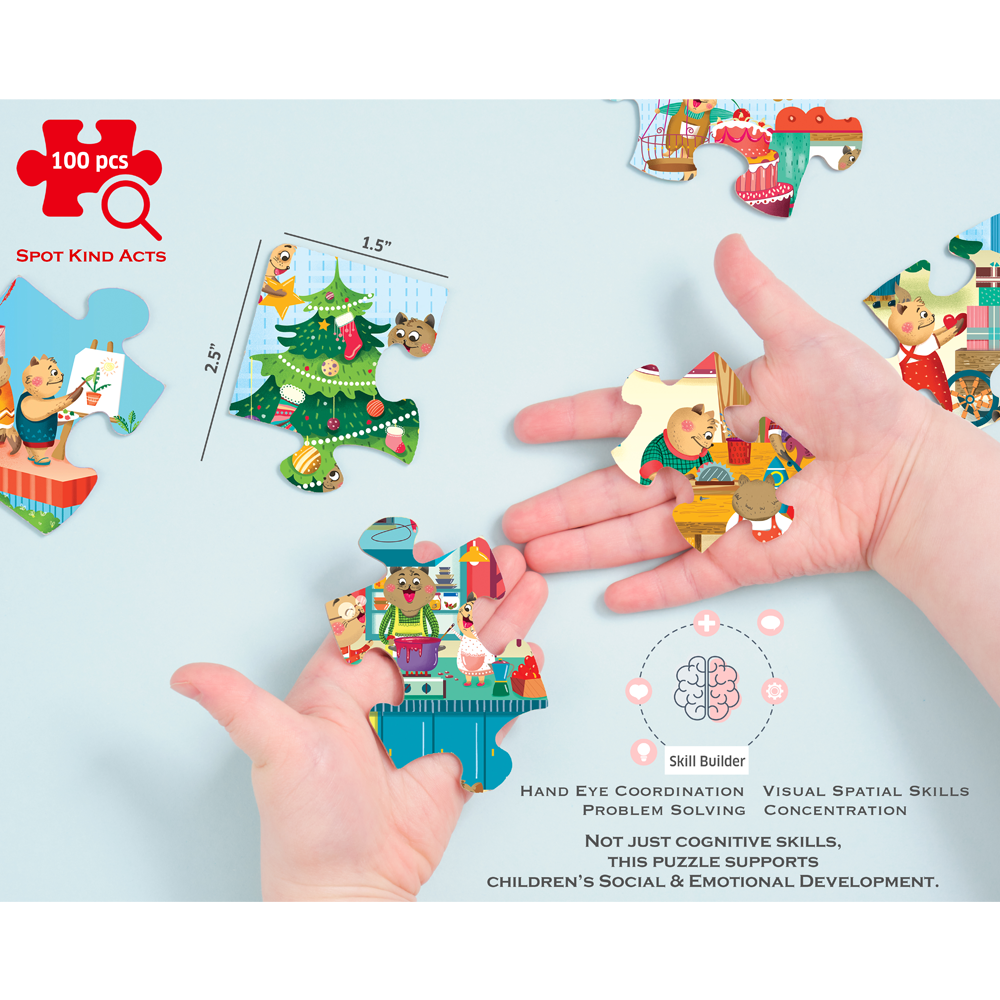 - Kindness-Themed 100-Piece Puzzle – Explore heartwarming scenes of sharing, caring, and helping.