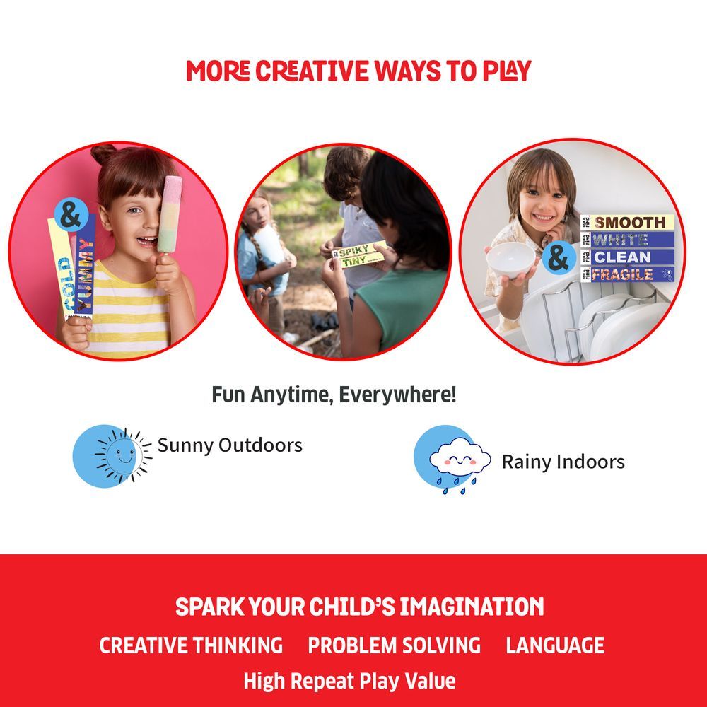Chalk and Chuckles Smart Sticks – Scavenger Hunt Game for Kids (Ages 5 6 7 8 9 10) Let your child’s imagination run wild with this exciting Scavenger Hunt Game – the perfect mix of adventure, movement, and learning! Designed for children aged 5 to 10, this educational card game encourages kids to explore their surroundings, notice details in nature and everyday life, and express themselves creatively. Whether you're at home, at the park, on a picnic, or at a birthday party, this game is your go-to activity for indoor and outdoor play. It’s a fun and engaging way to keep kids active and entertained—without screens. Packed with 60+ prompt cards, the game covers colors, shapes, textures, nature objects, adjectives, and more. Children will match, describe, and search based on playful “find it” challenges that build observation skills, communication, and creative thinking. Ideal for family game nights, playdates, homeschooling, classrooms, and travel, this game is easy to carry and works for 1 or more players. Play can last just 10 minutes or the whole afternoon—you decide! Parents love this game for its powerful blend of learning and fun. It offers STEM-inspired discovery, sparking curiosity, problem-solving, and early thinking skills in young children. Rooted in Montessori-style play, it’s a screen-free activity that encourages kids to move, observe, and interact with the world around them. Whether it's a birthday party, Eid celebration, school break, or camping trip, this scavenger hunt is the perfect boredom buster and travel companion. It’s also a thoughtful gift for boys and girls aged 3 to 10, ideal as a return gift, classroom prize, or alternative to conventional toys. Approved by educators, it’s trusted by teachers, parents, and homeschoolers looking for creative ways to build essential life skills through play.