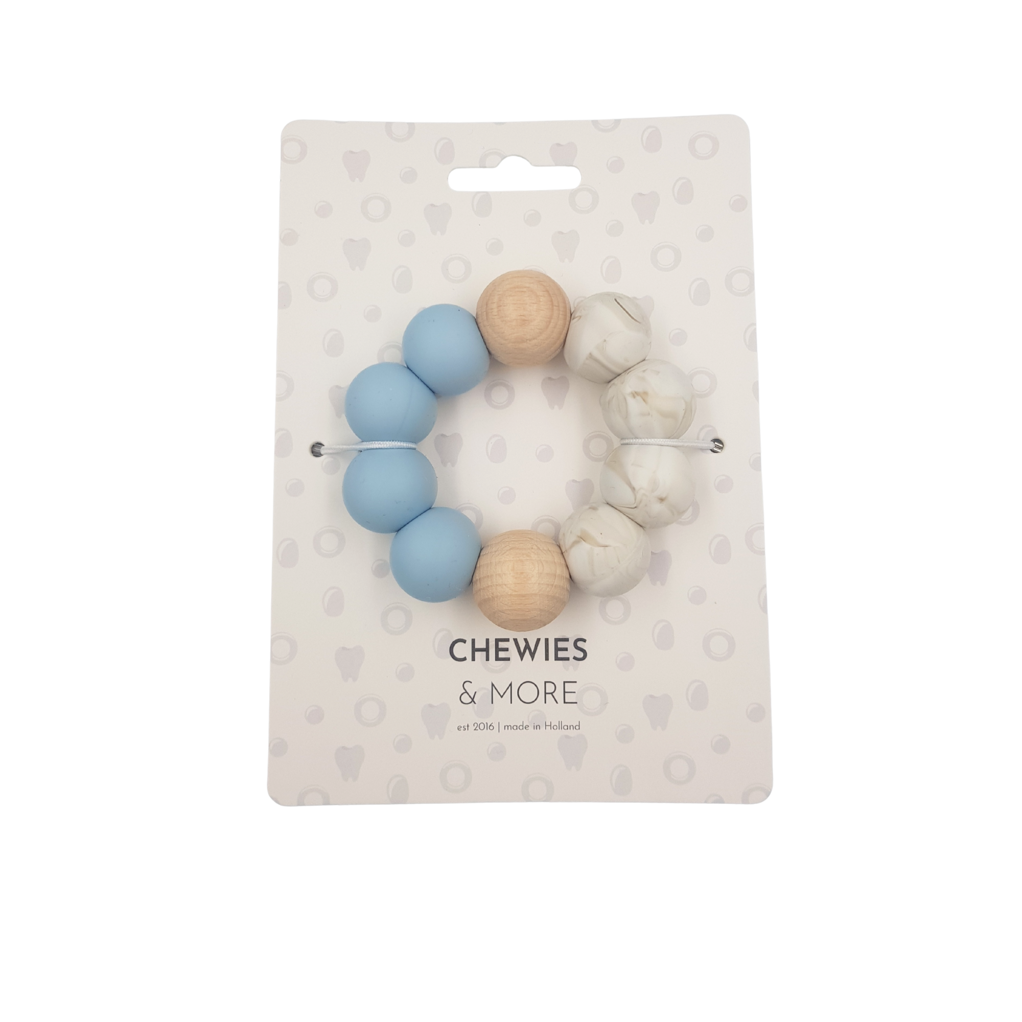 This Basic Chewie is easy to hold due to the round size and the different colours, contrasts and structures of the beads make it even more interesting for your little one! And practical for mom, it fits in your pocket;)