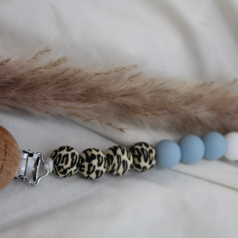 This cool Leopard Clip consists of 4 silicone beads with leopard print, 3 colour beads and the hexagon with the 2 beads around it.